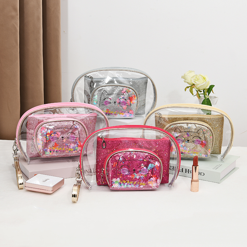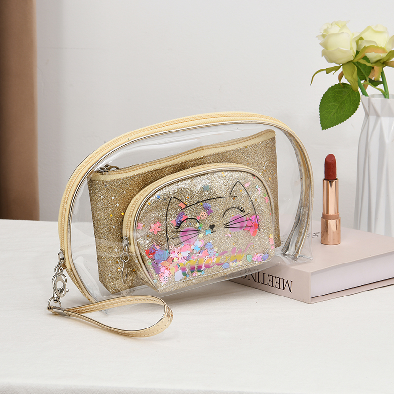 새로운 인터넷 유명한 고양이 퀵 샌드 세미 라운드 3 피스 야외 대용량 휴대용 보관 가방 여행 세탁 가방 도매스토어 가기