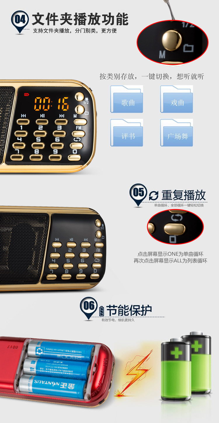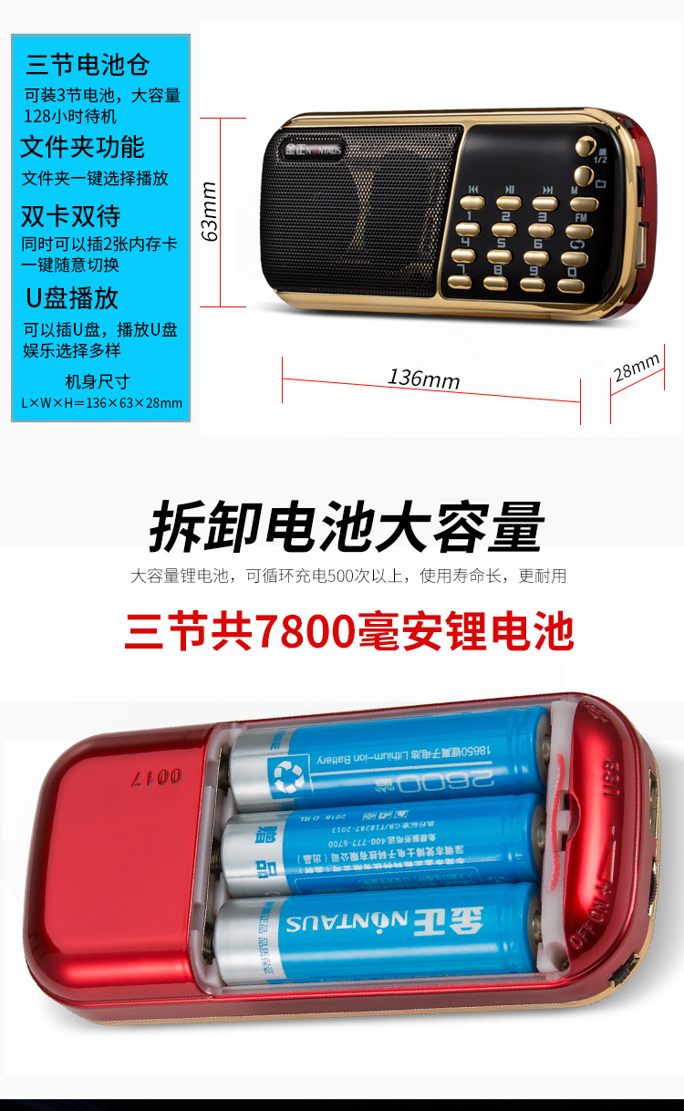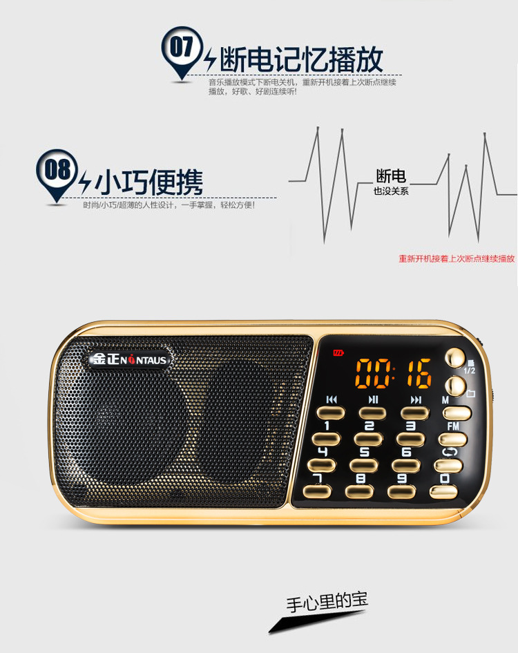 Jinzheng B853 3 단계 라디오 MP3 노인 미니 작은 오디오 카드 스피커 휴대용 음악 재생