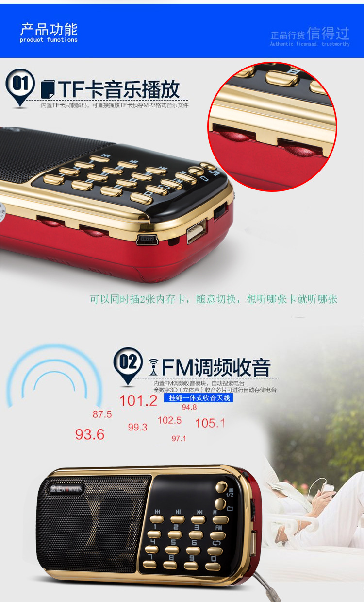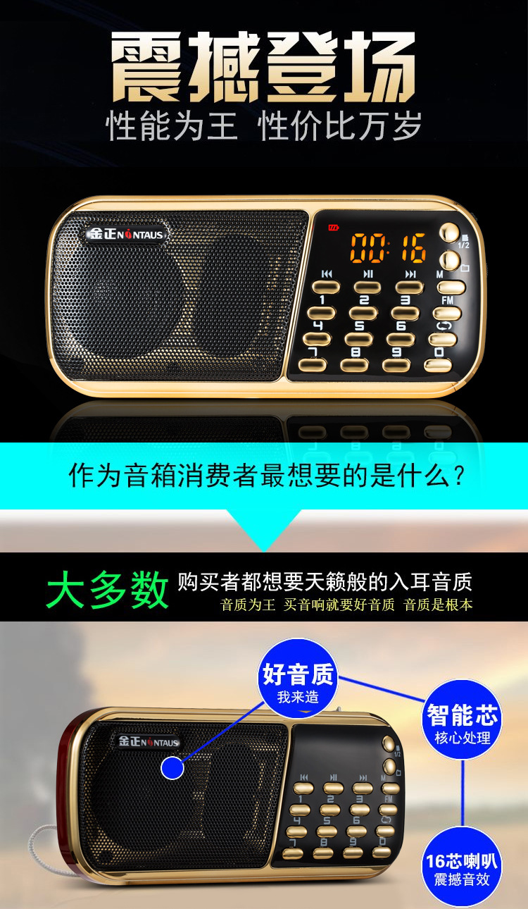 Jinzheng B853 3 단계 라디오 MP3 노인 미니 작은 오디오 카드 스피커 휴대용 음악 재생스토어 가기