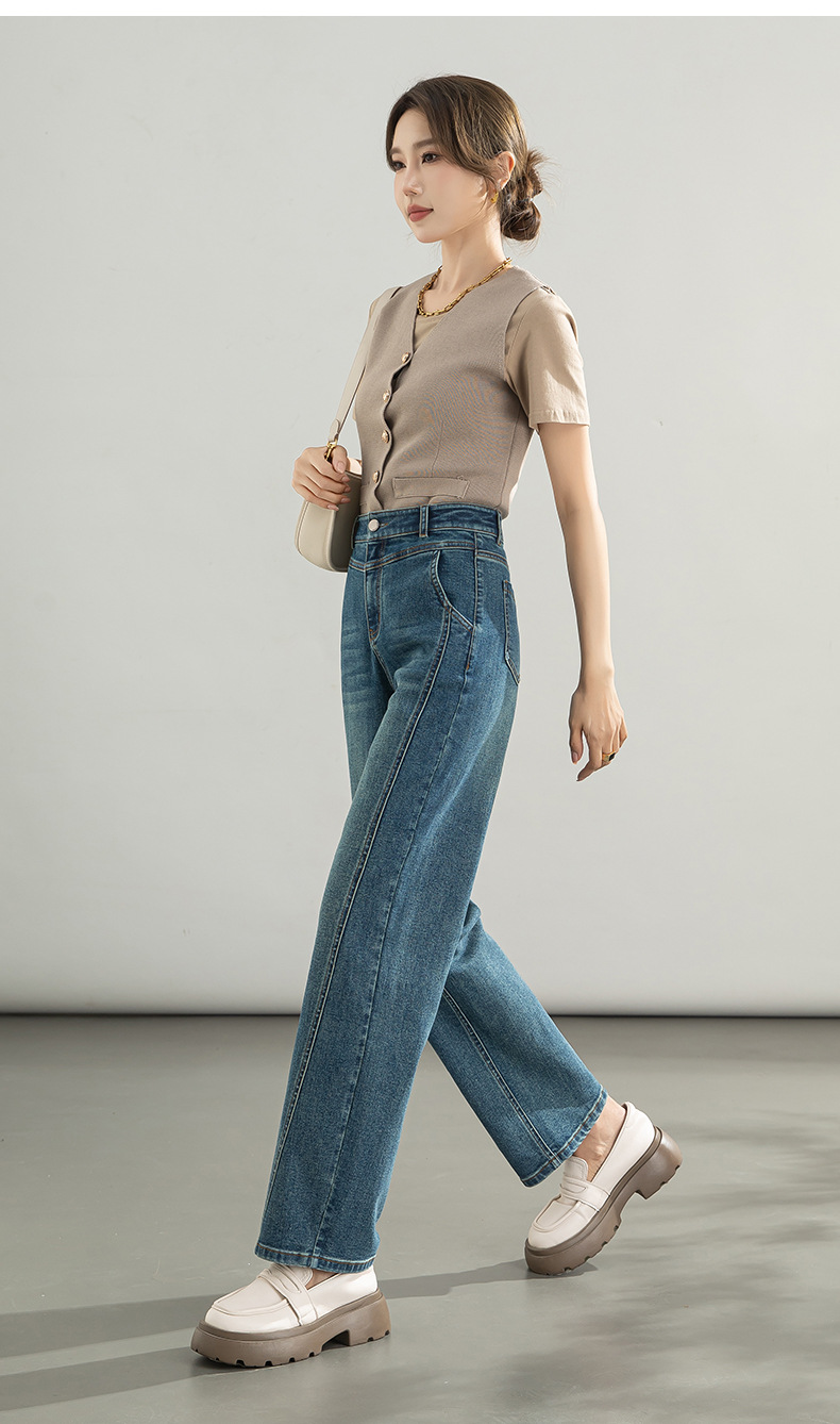 레트로 데님 낫바지 여성용 2025 가을 신상 한국 스타일 하이웨이스트 루즈핏 바나나 팬츠 8083