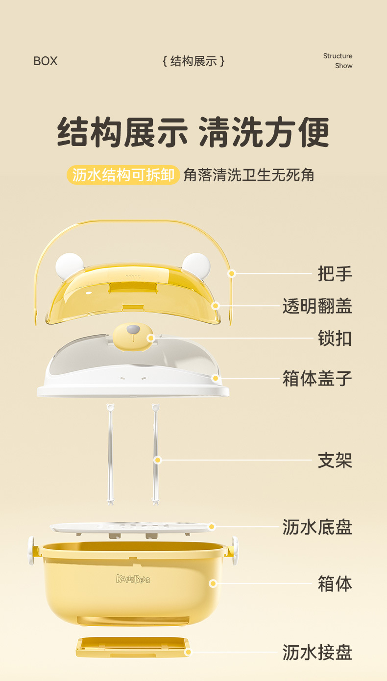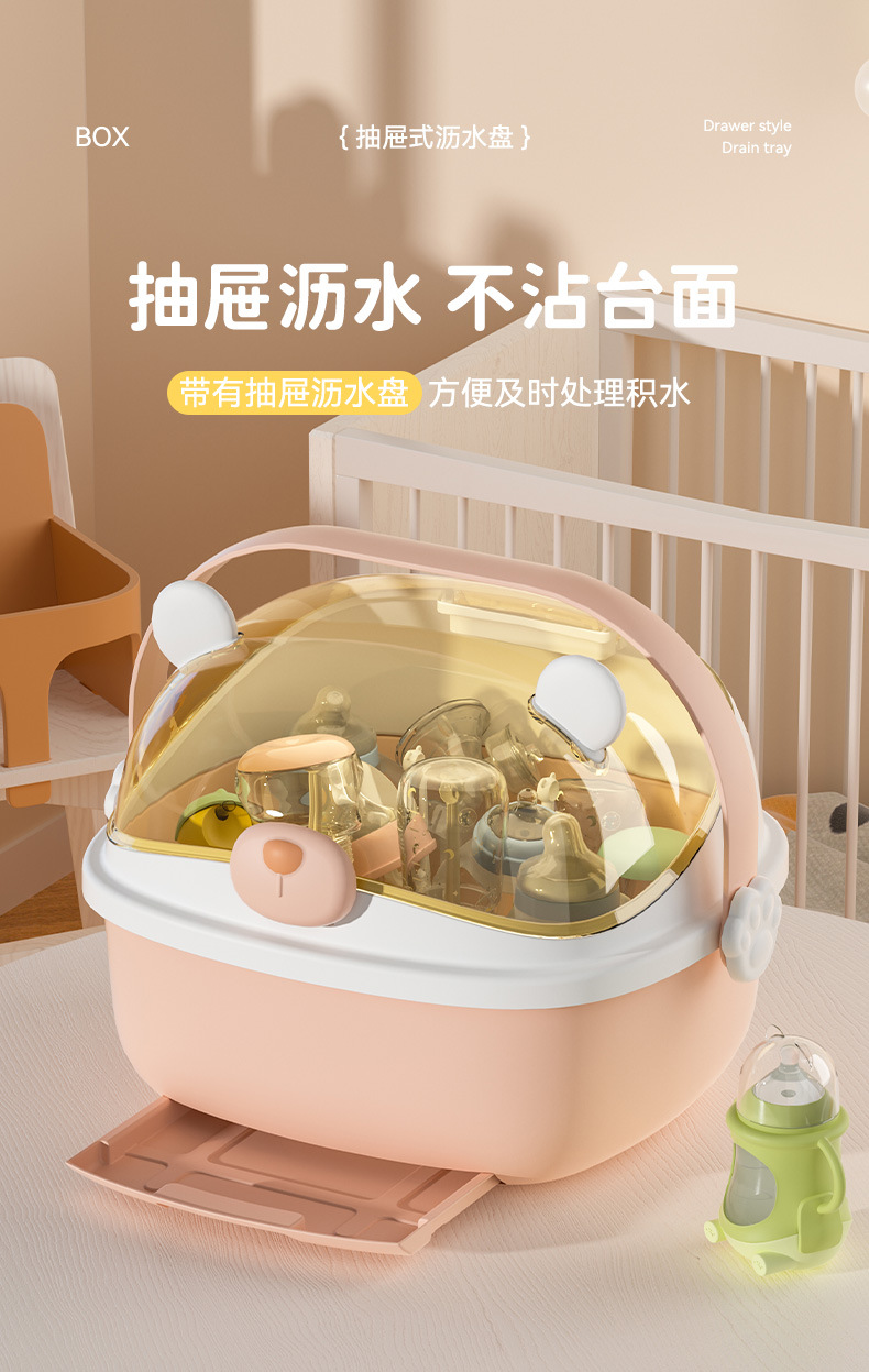 아기 먹이 병 보관 상자 뚜껑 방진 유아식 보충 식기 도구 보관 상자 캐비닛이있는 배수 선반 건조