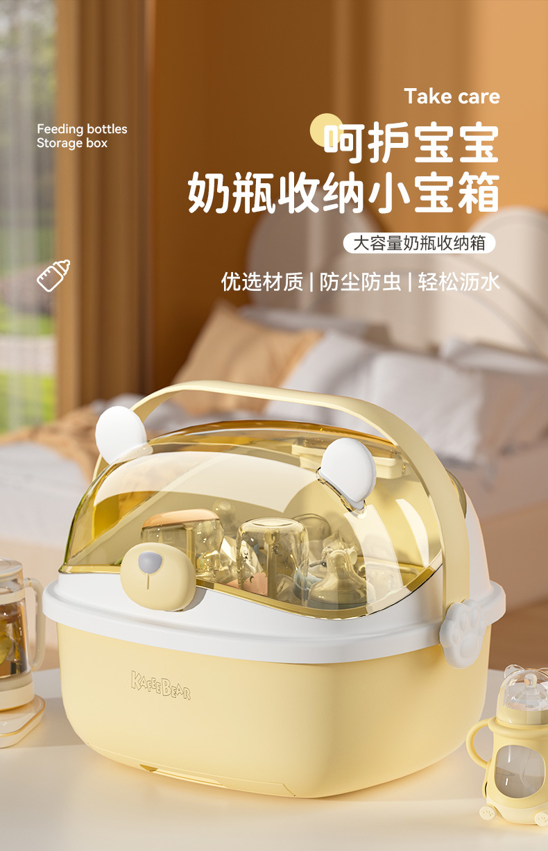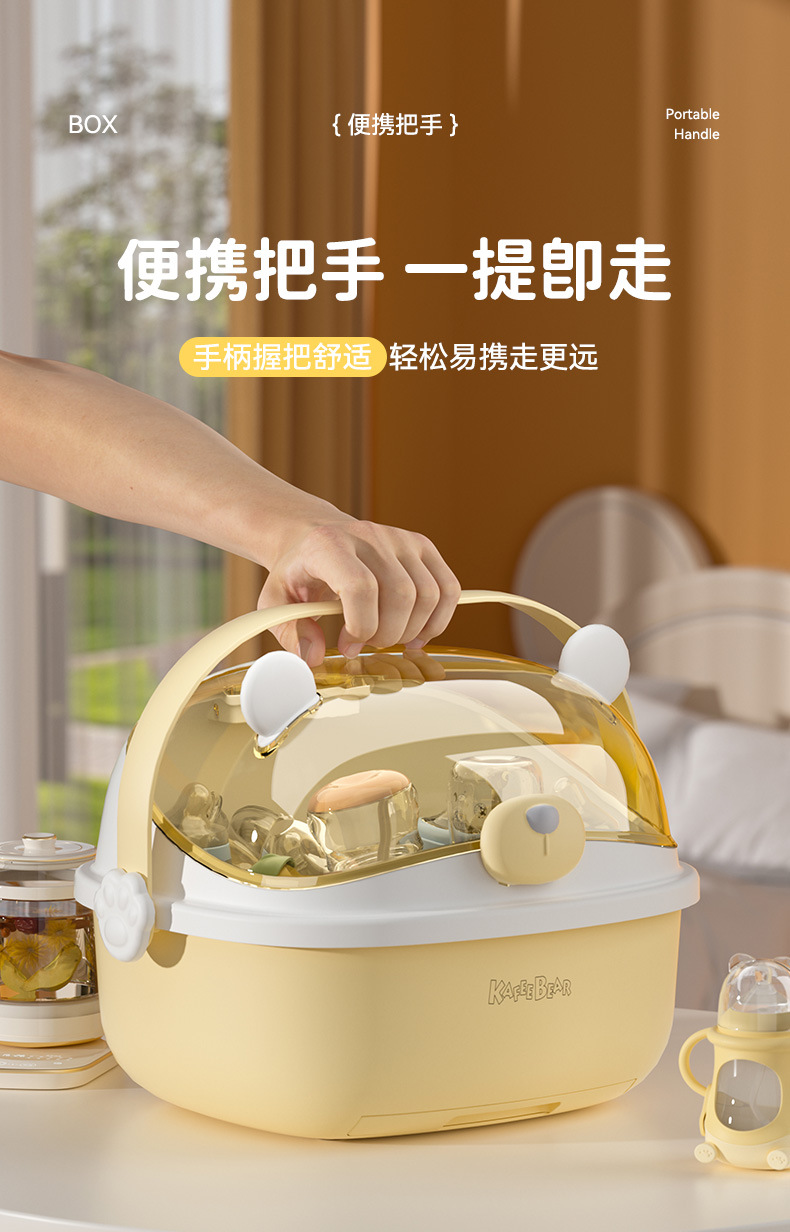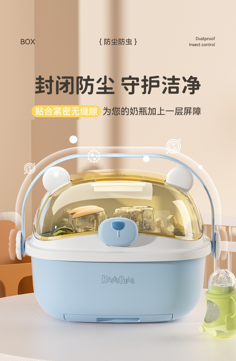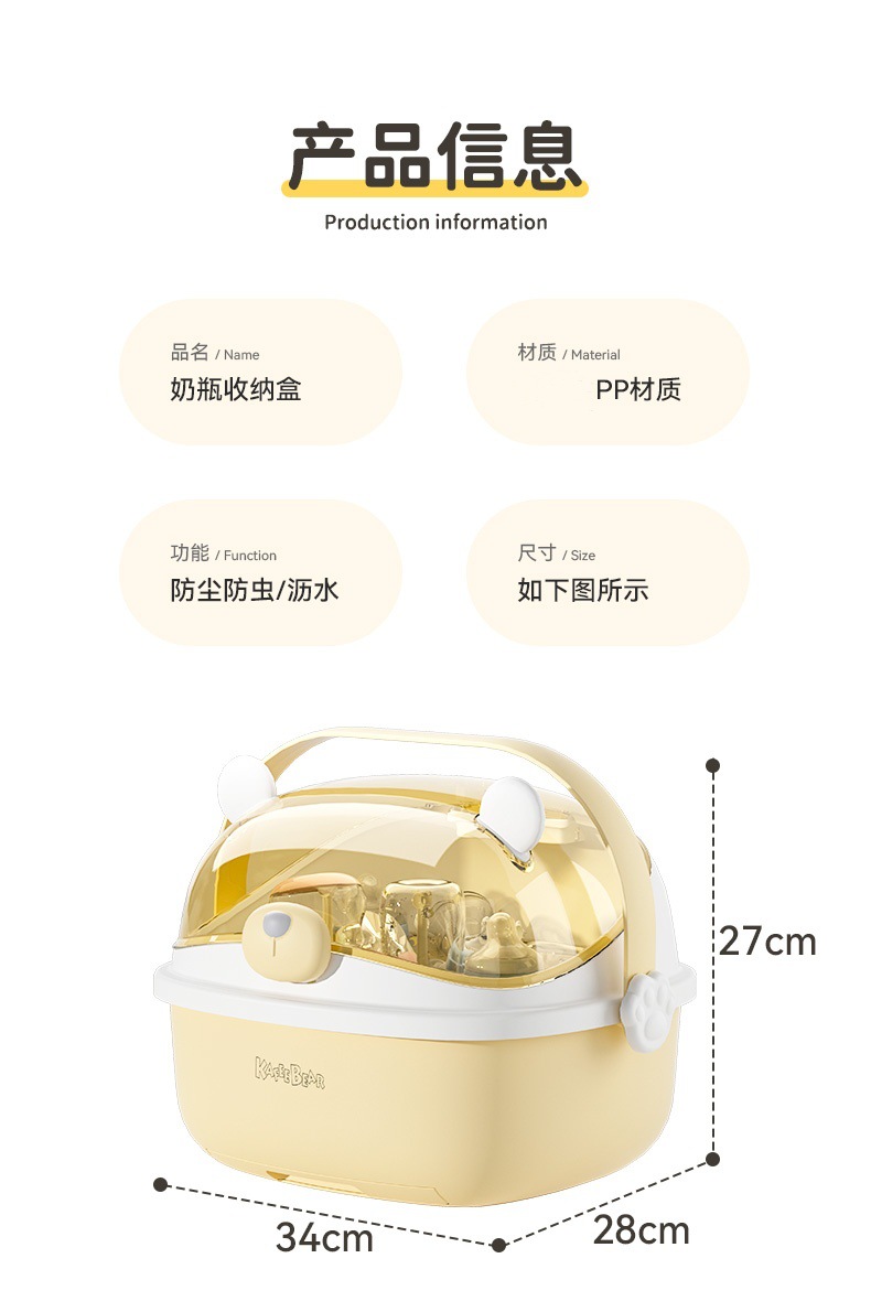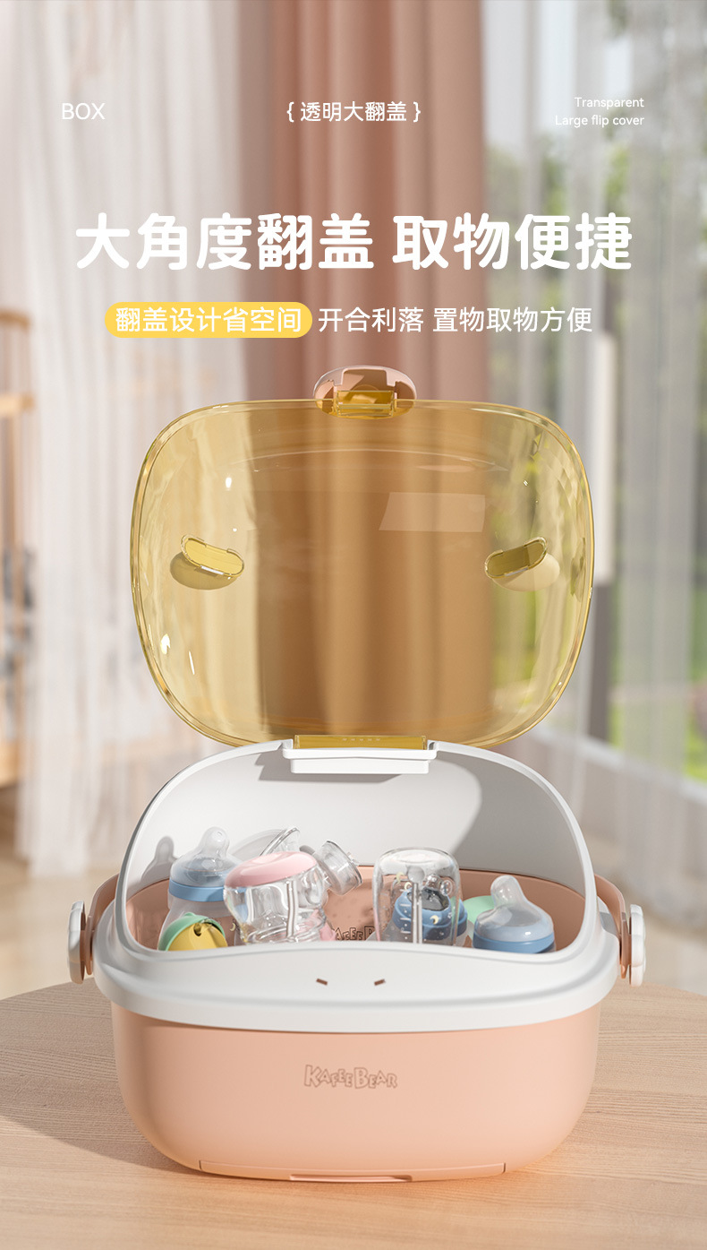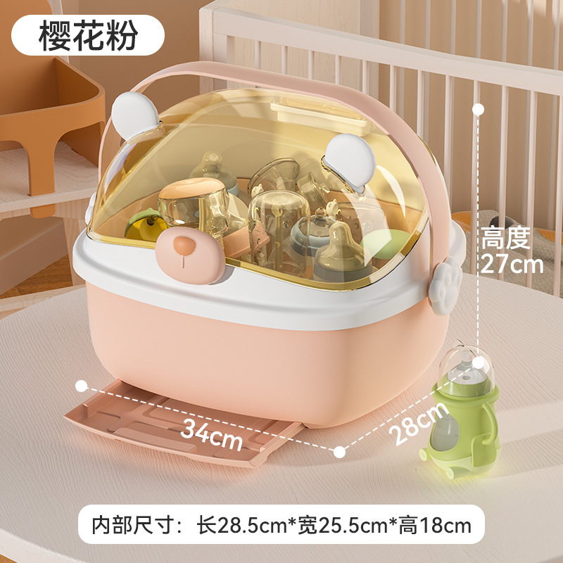 아기 먹이 병 보관 상자 뚜껑 방진 유아식 보충 식기 도구 보관 상자 캐비닛이있는 배수 선반 건조스토어 가기