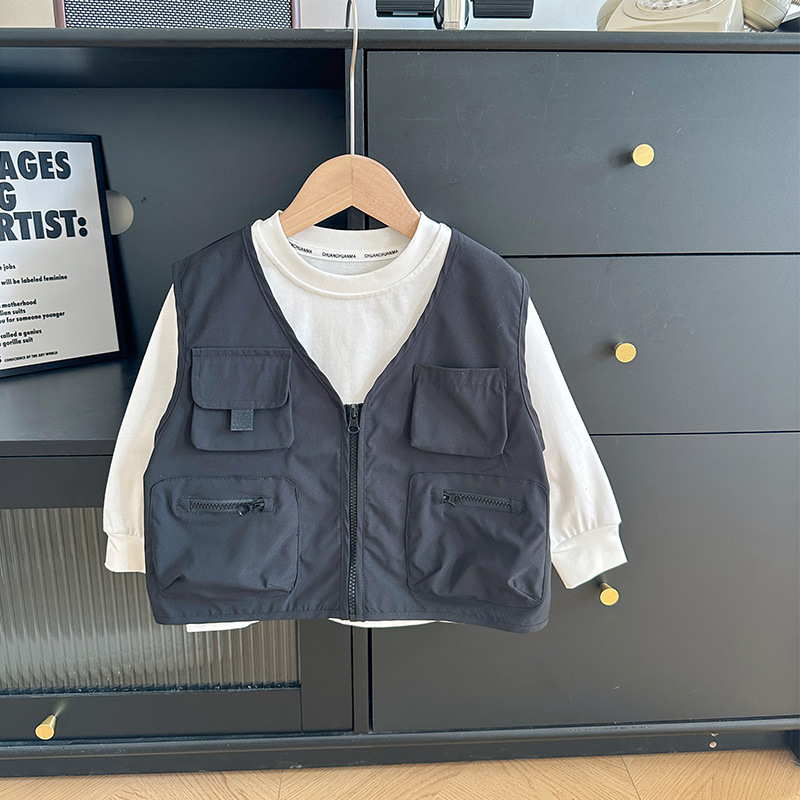샤나 오 2024 이른 봄 새로운 아동복 일본식 작업복 봄과 가을 잘 생긴 올 매치