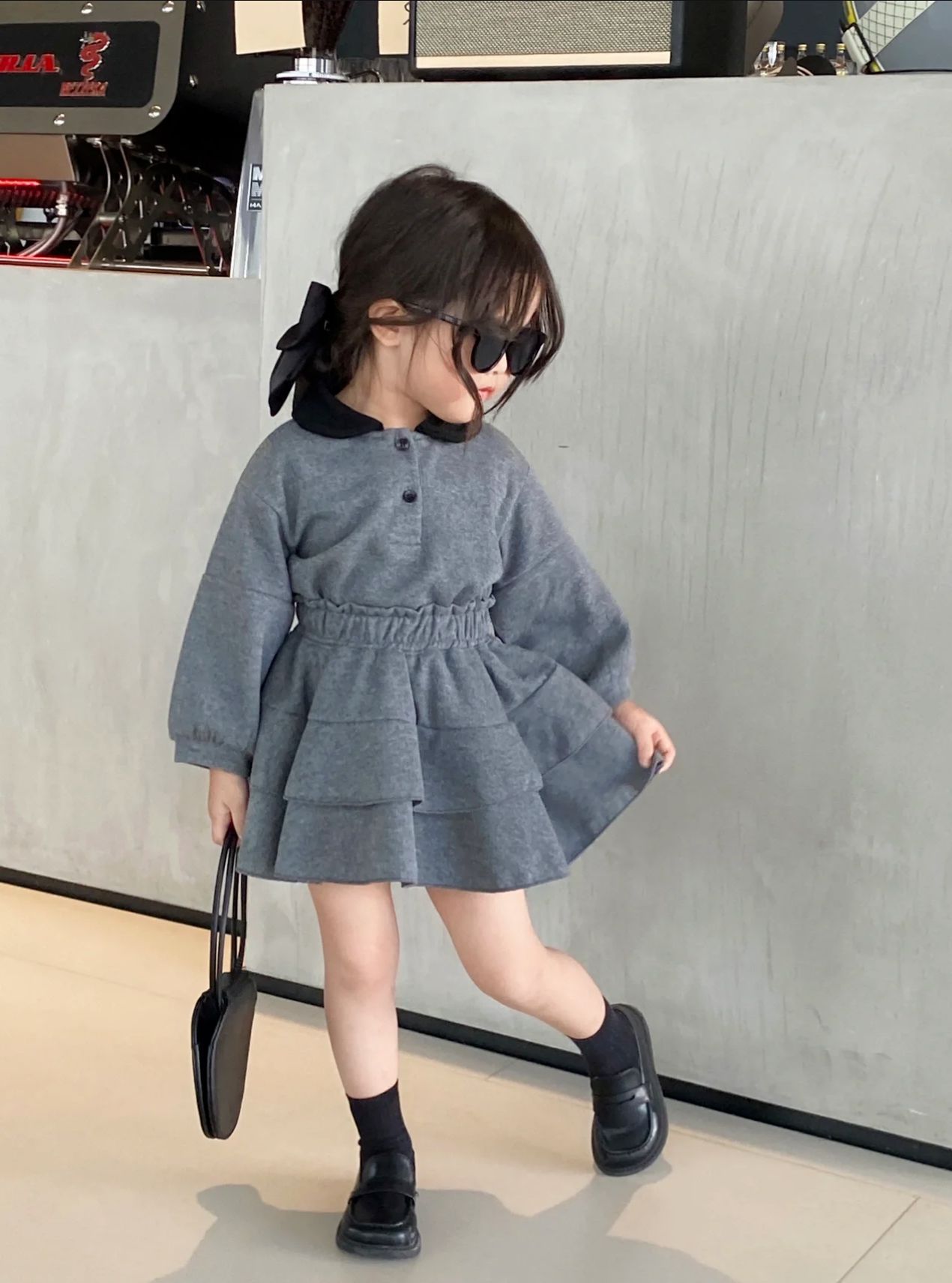2026 봄 신상 여아 유럽풍 스커트 세트 폴로 블랙 라펠 탑+케이크 스커트 니트 투피스 세트