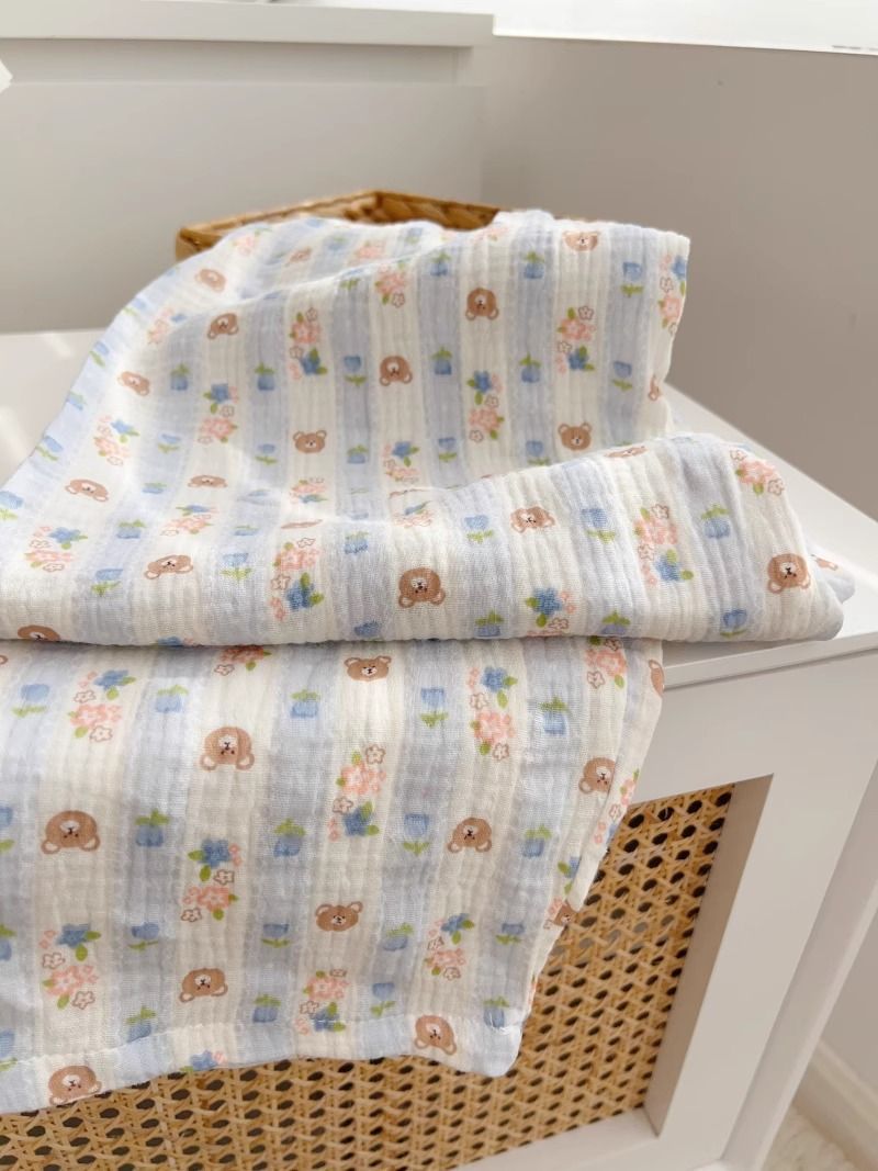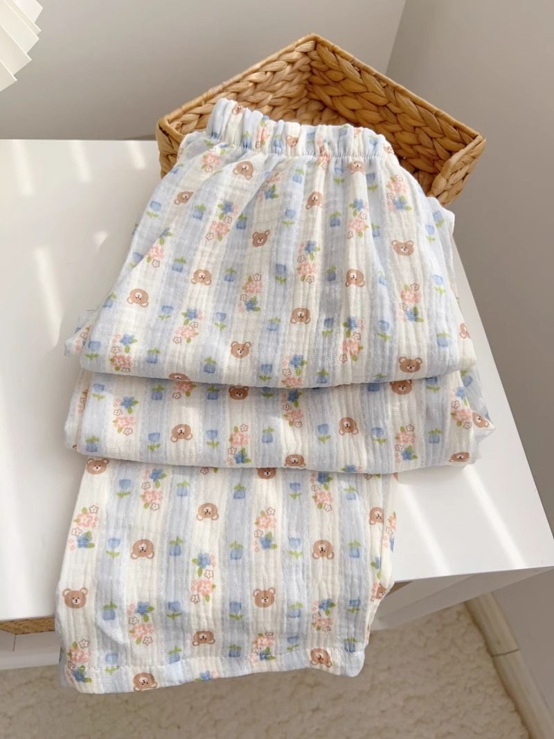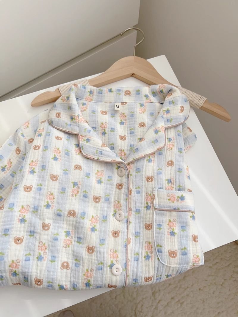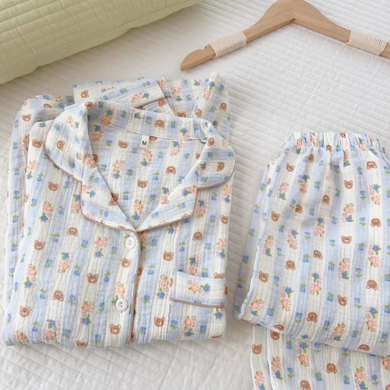 블루 베어 면사 잠옷 여성의 가을과 겨울 만화 귀여운 프린트 긴팔 바지 간단한 홈웨어 세트스토어 가기