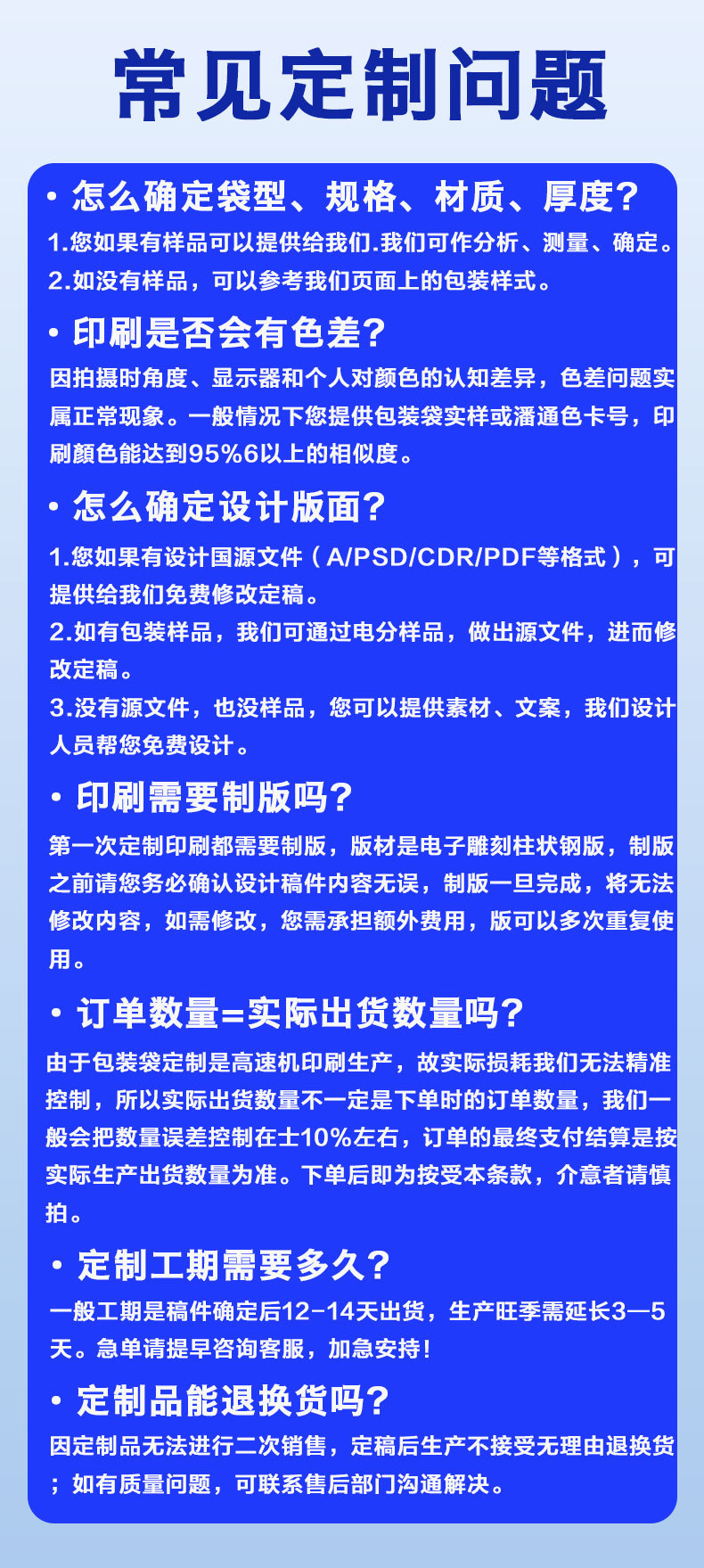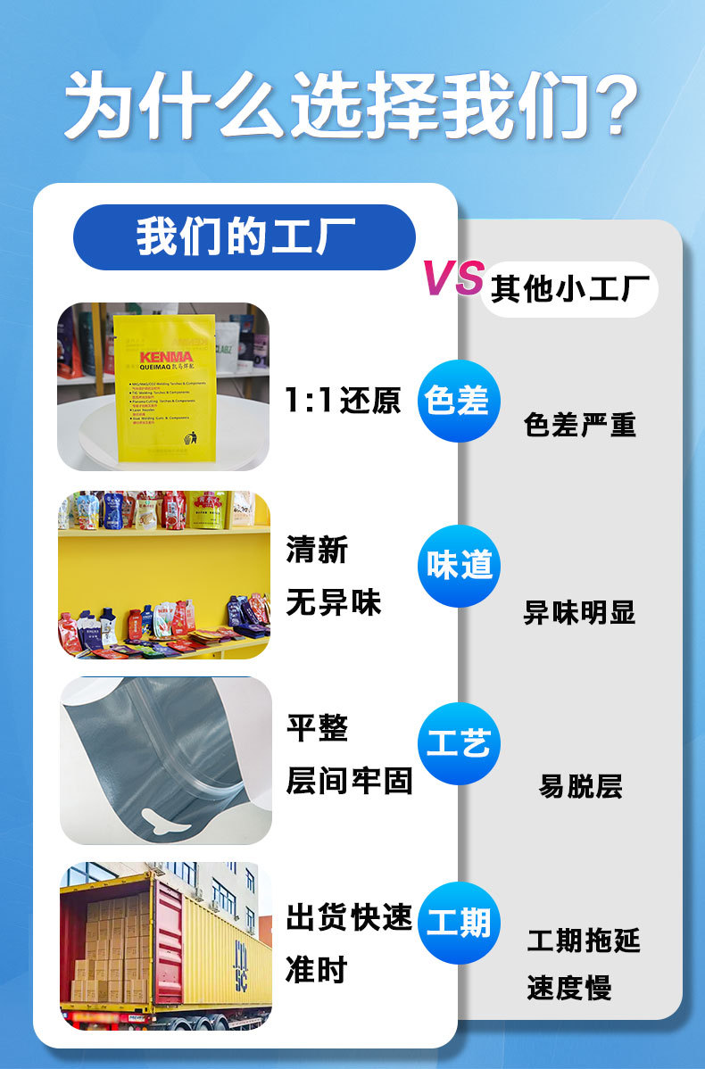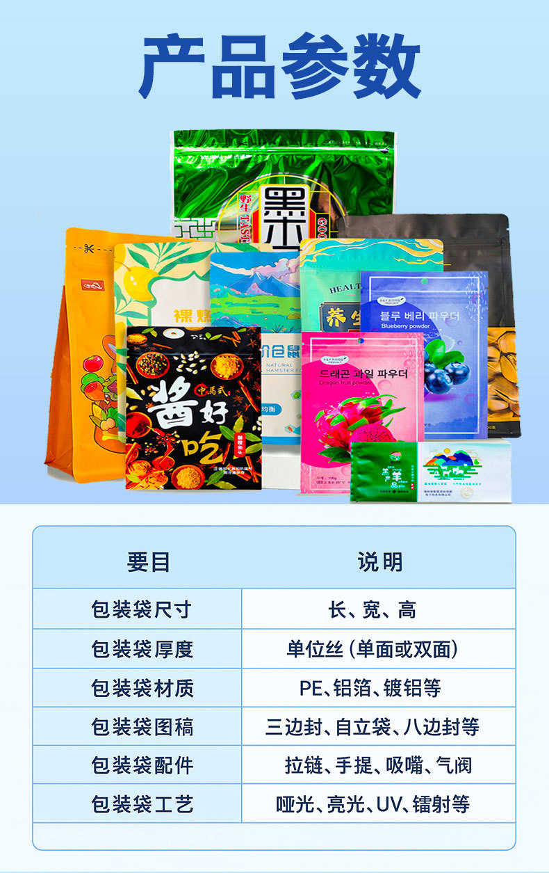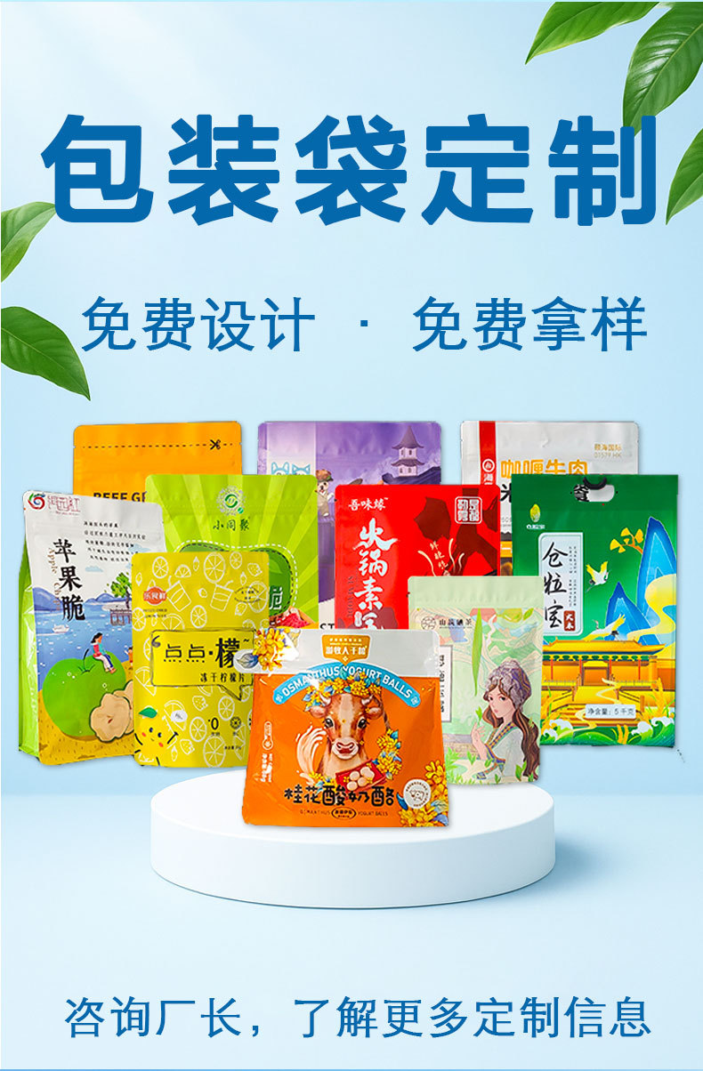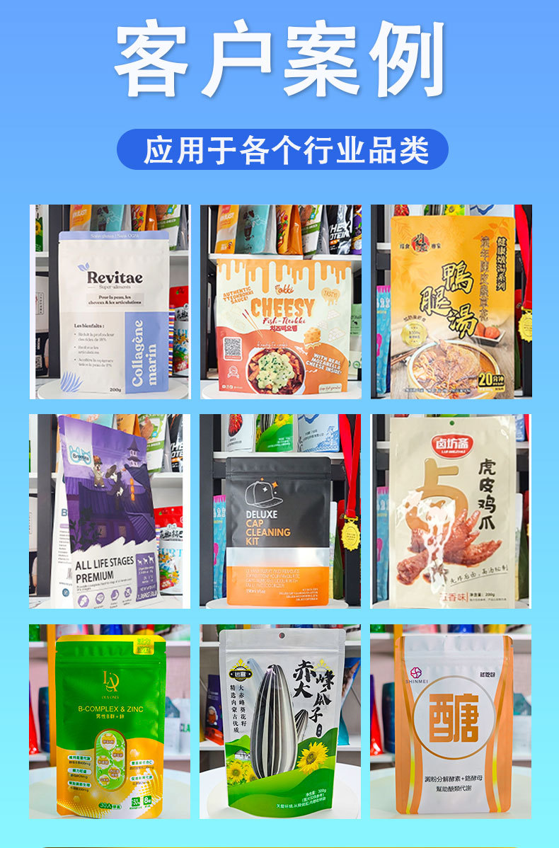 2.支持一件起订,不用担心起订量限制;袋型不限、工艺不限,小批量也能享受定制服务,满足新产品试产与小众市场需求。