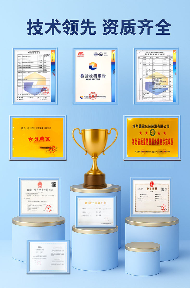 9.原料层层把控、成品严格质检,产品通过多项专业检测认证,确保食品包装安全、环保、可靠。