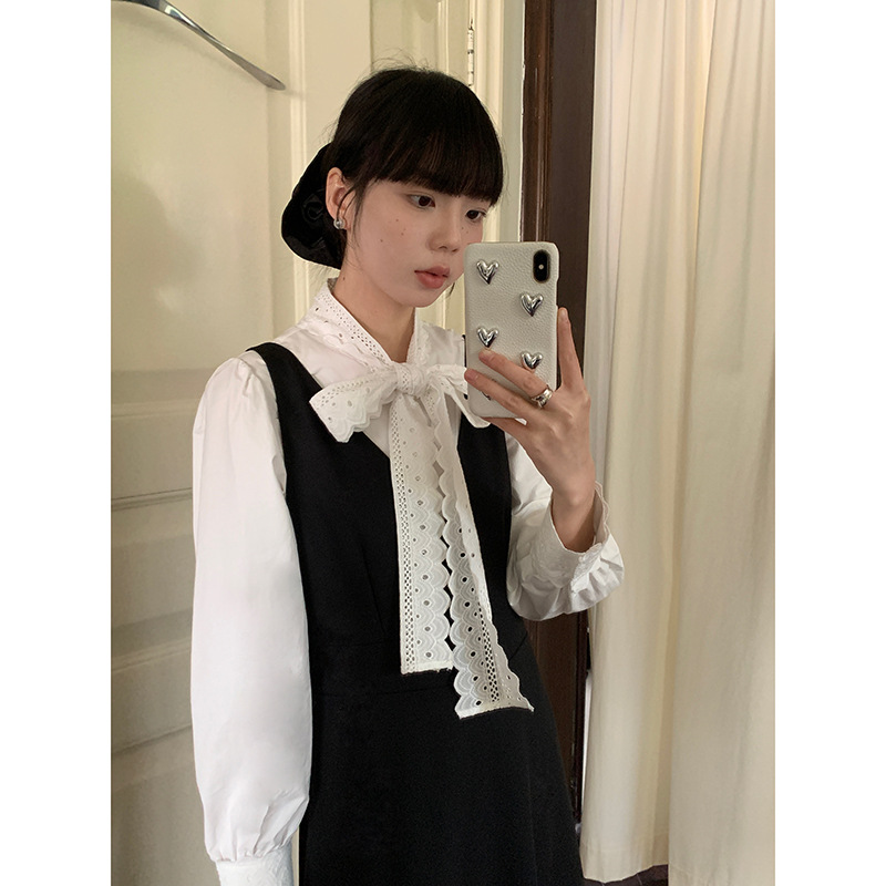 [Geming] 여성용 프렌치 레트로 레이스 레이스업 셔츠 2025 가을 신상 한국 통근 탑 X1190F