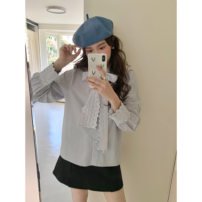 [Geming] 여성용 프렌치 레트로 레이스 레이스업 셔츠 2025 가을 신상 한국 통근 탑 X1190F스토어 가기