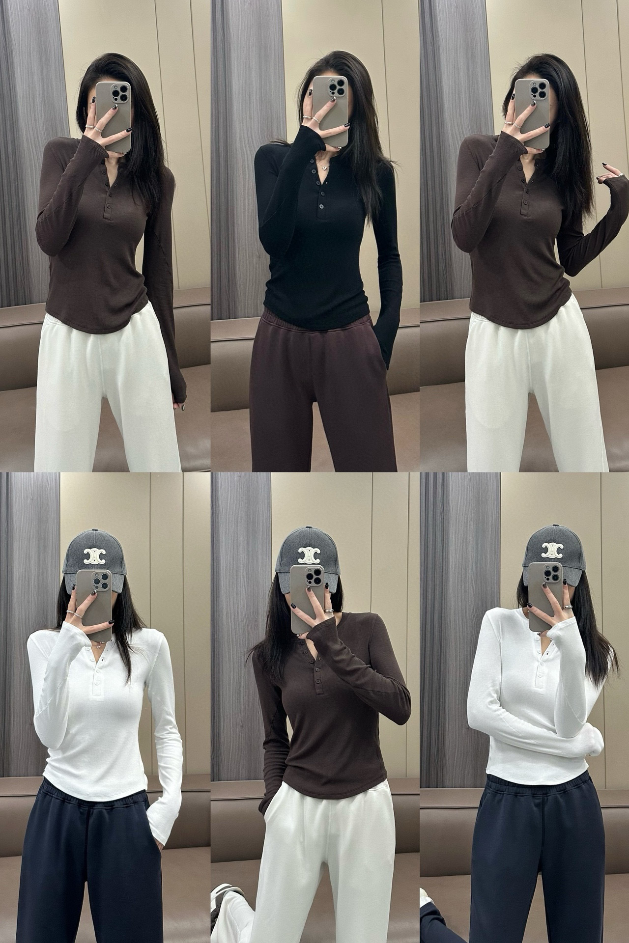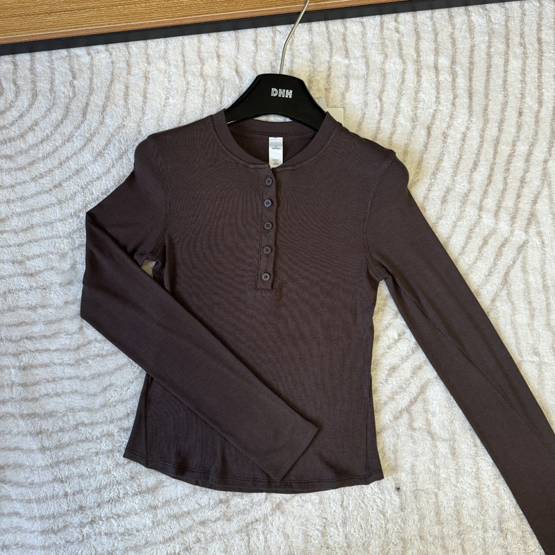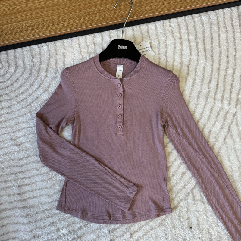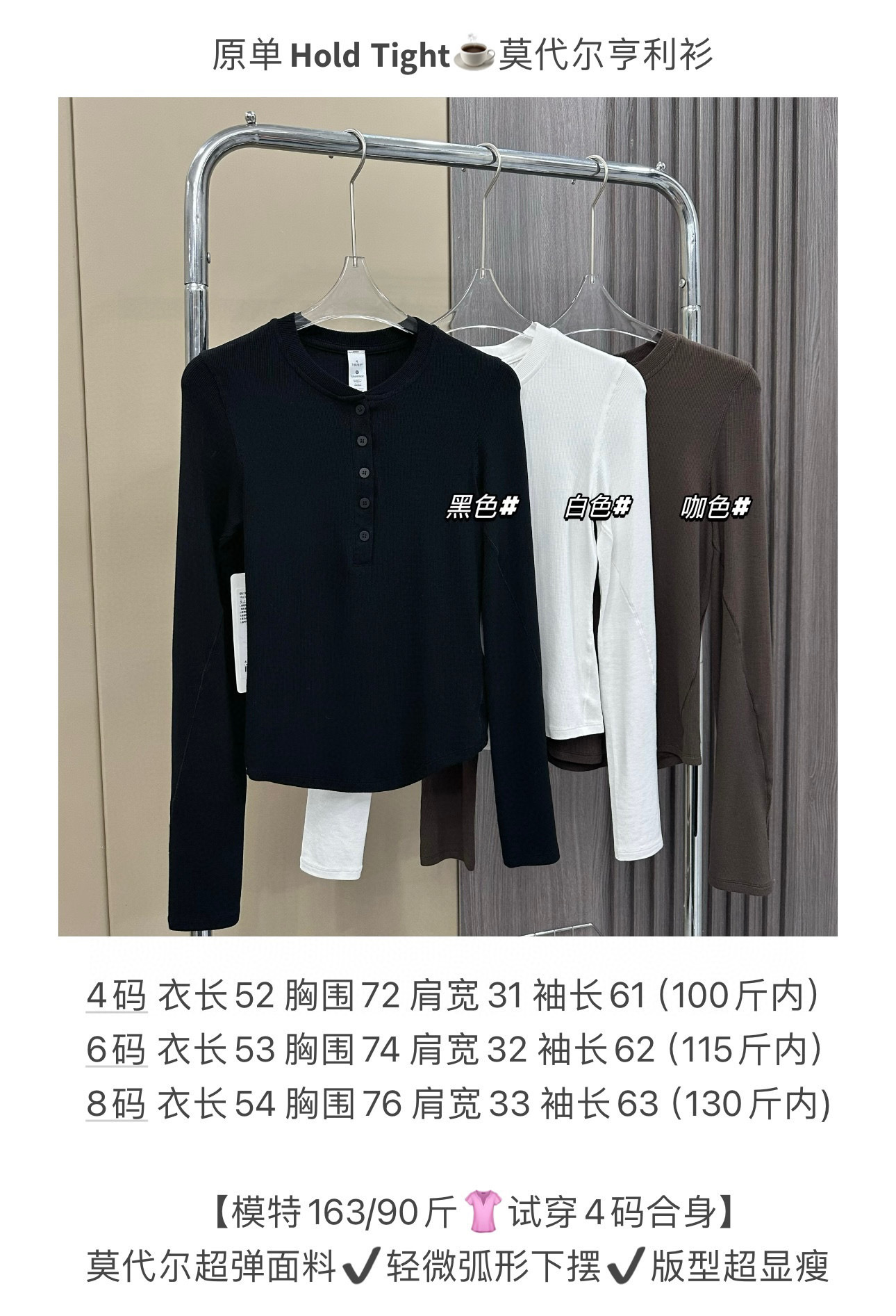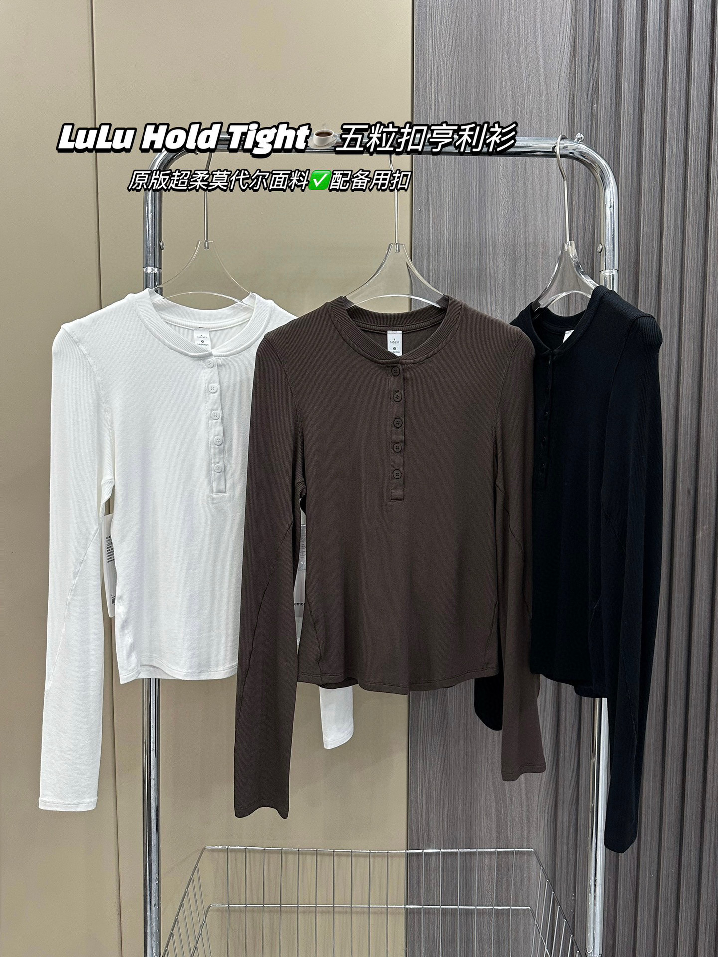 울루, 꽉 버튼 모달 긴 소매 바닥 셔츠 가을과 겨울 요가 스포츠 슬림 헨리 셔츠스토어 가기