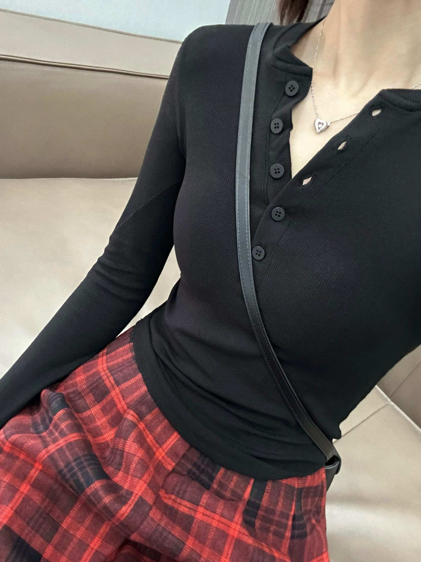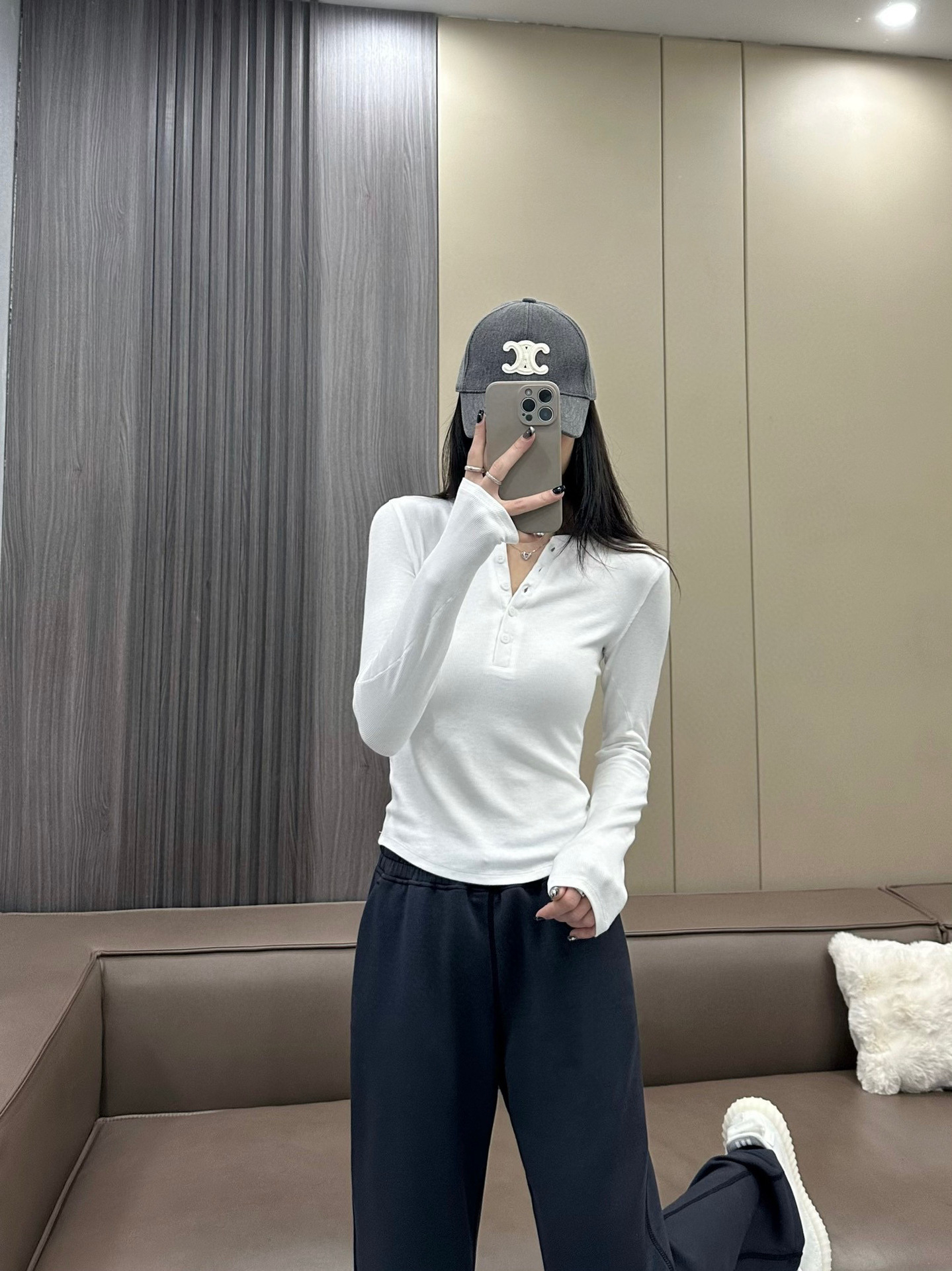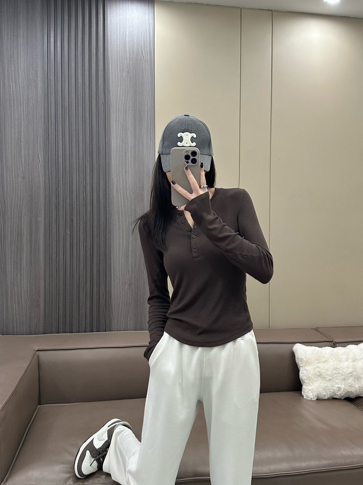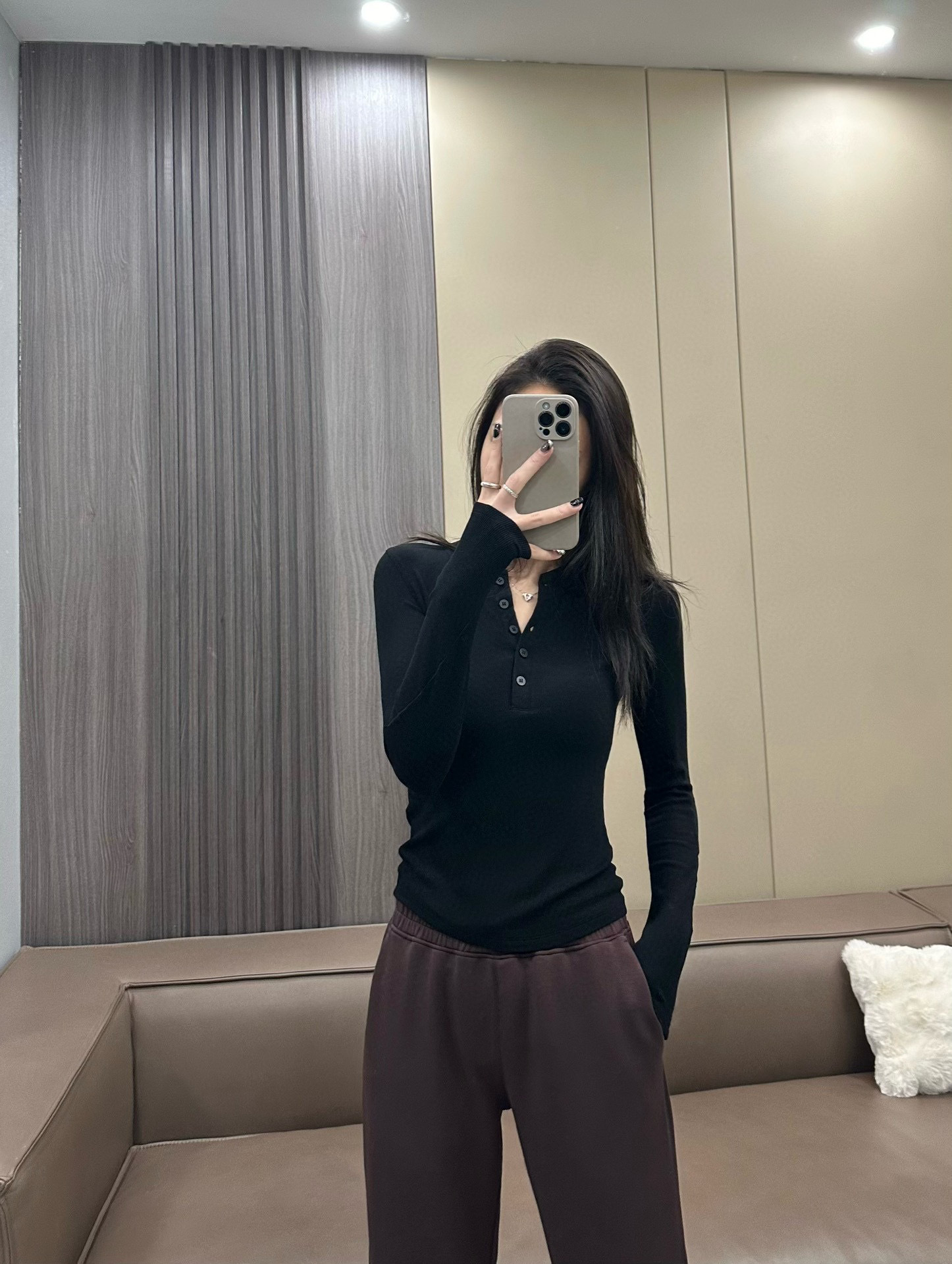 울루, 꽉 버튼 모달 긴 소매 바닥 셔츠 가을과 겨울 요가 스포츠 슬림 헨리 셔츠스토어 가기