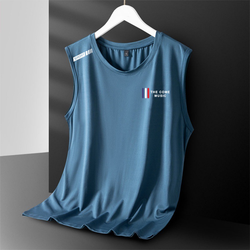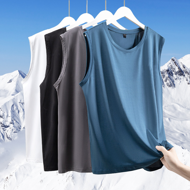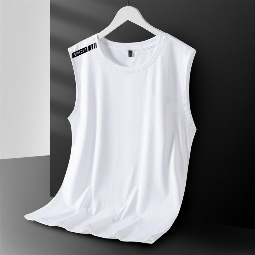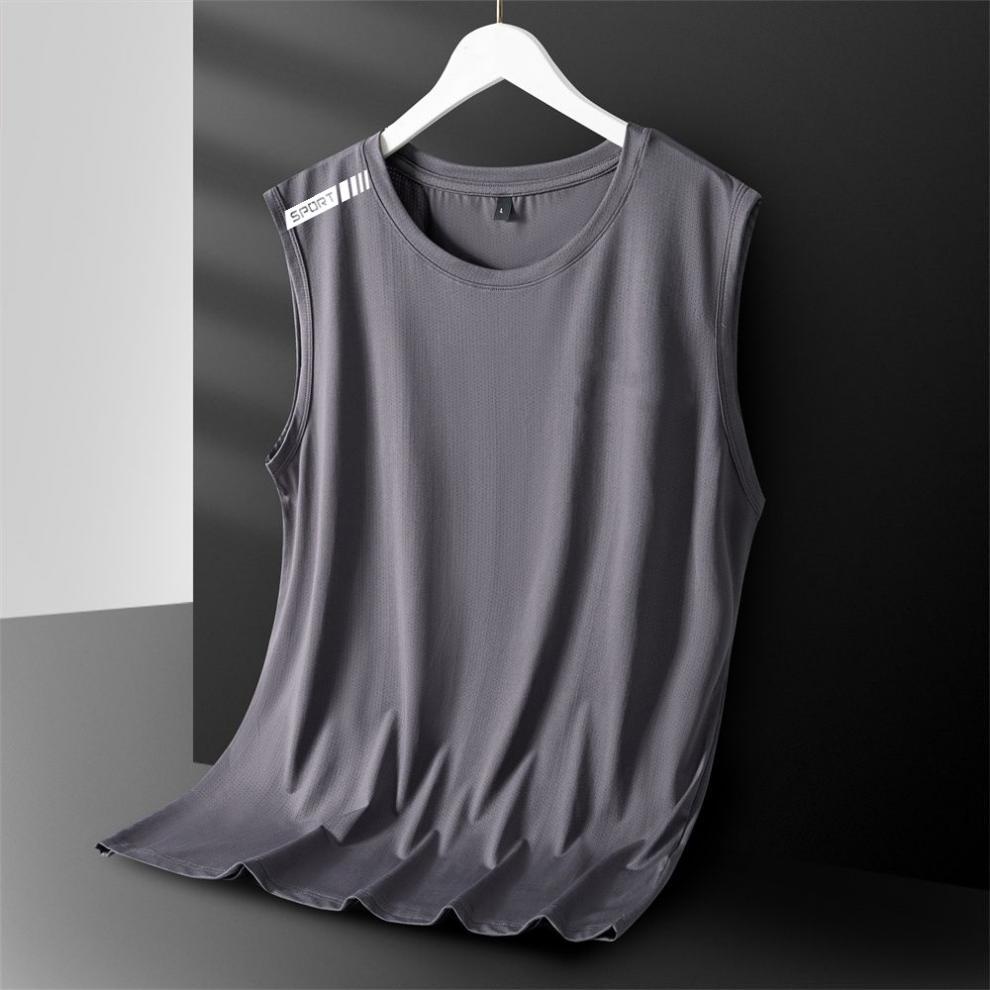 아이스 실크 조끼 남성용 트렌디 한 얇은 통기성 빠른 건조 스포츠 레저 와이드 웨이스트 코트 남성용 라운드 넥 민소매 티셔츠스토어 가기