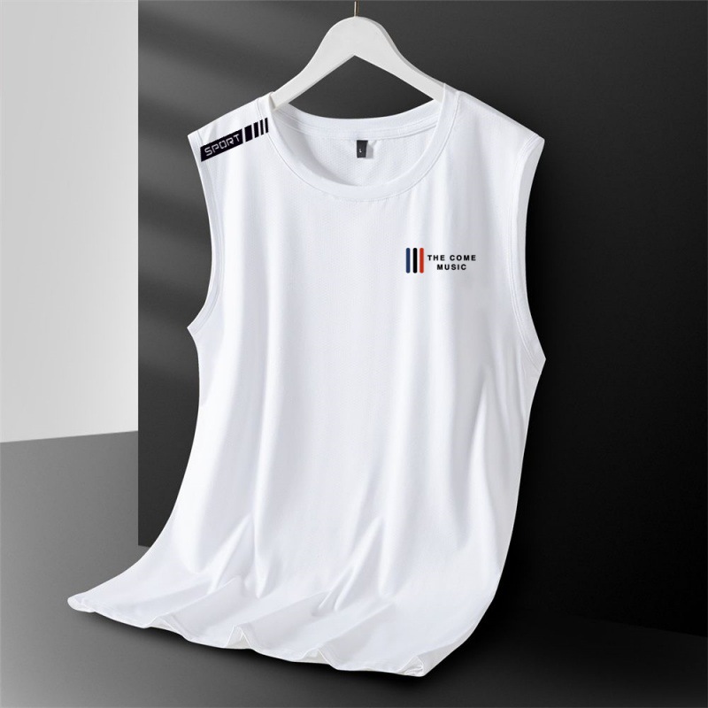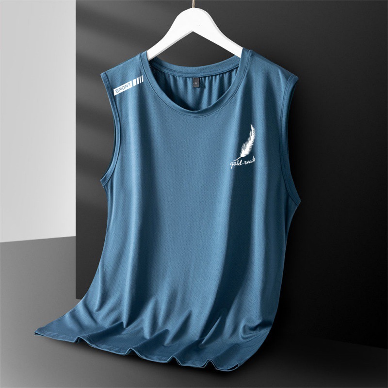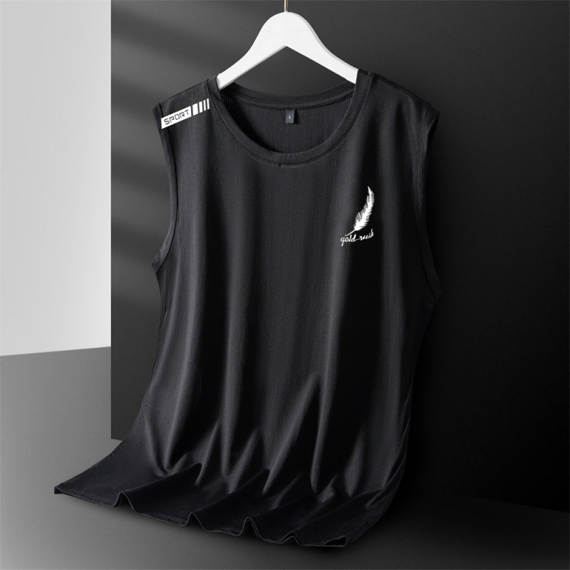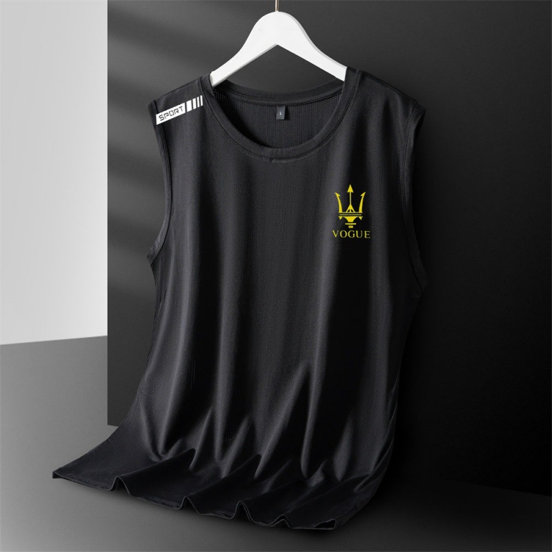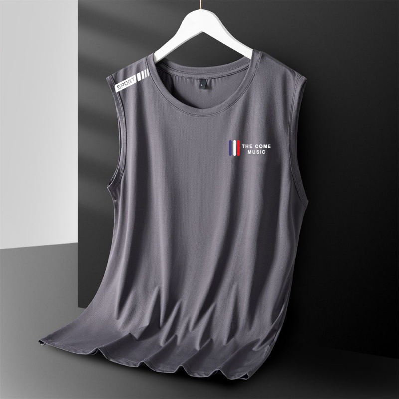 아이스 실크 조끼 남성용 트렌디 한 얇은 통기성 빠른 건조 스포츠 레저 와이드 웨이스트 코트 남성용 라운드 넥 민소매 티셔츠스토어 가기