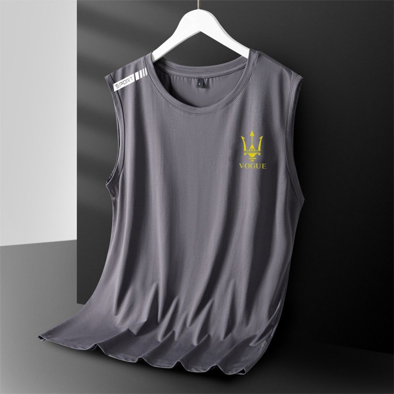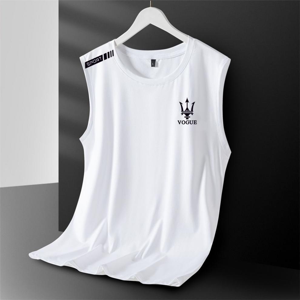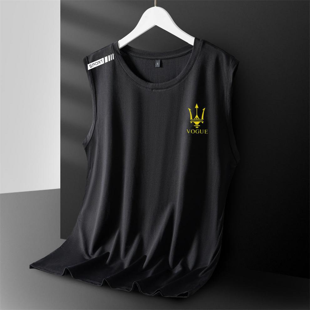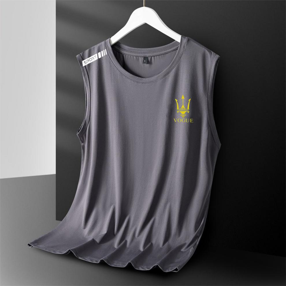 아이스 실크 조끼 남성용 트렌디 한 얇은 통기성 빠른 건조 스포츠 레저 와이드 웨이스트 코트 남성용 라운드 넥 민소매 티셔츠