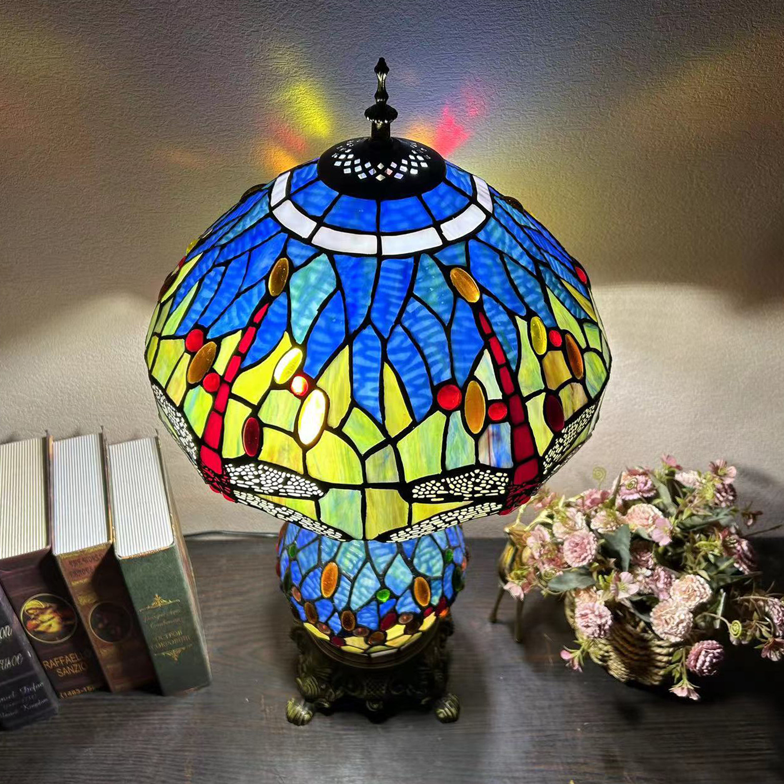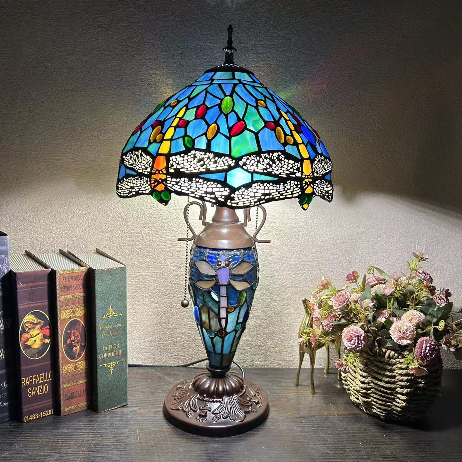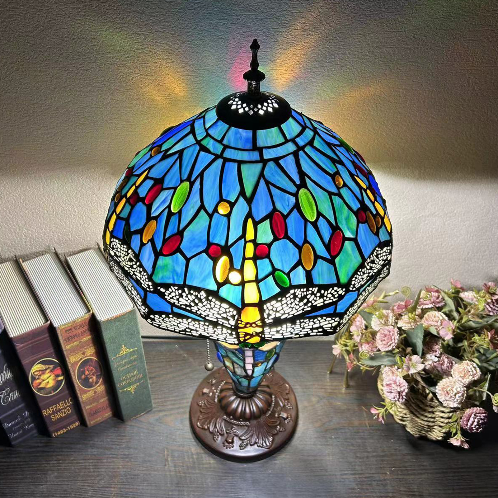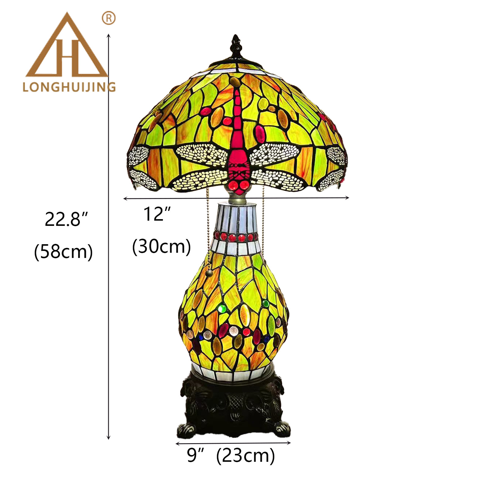 【材质】:TIFFANY彩色玻璃灯罩+锌合金底座