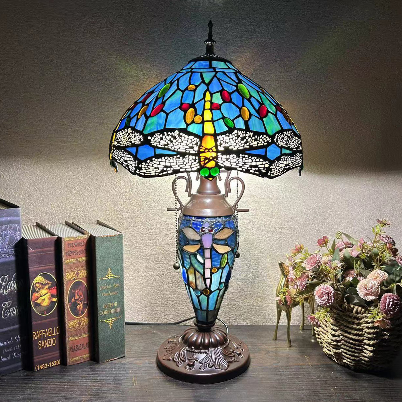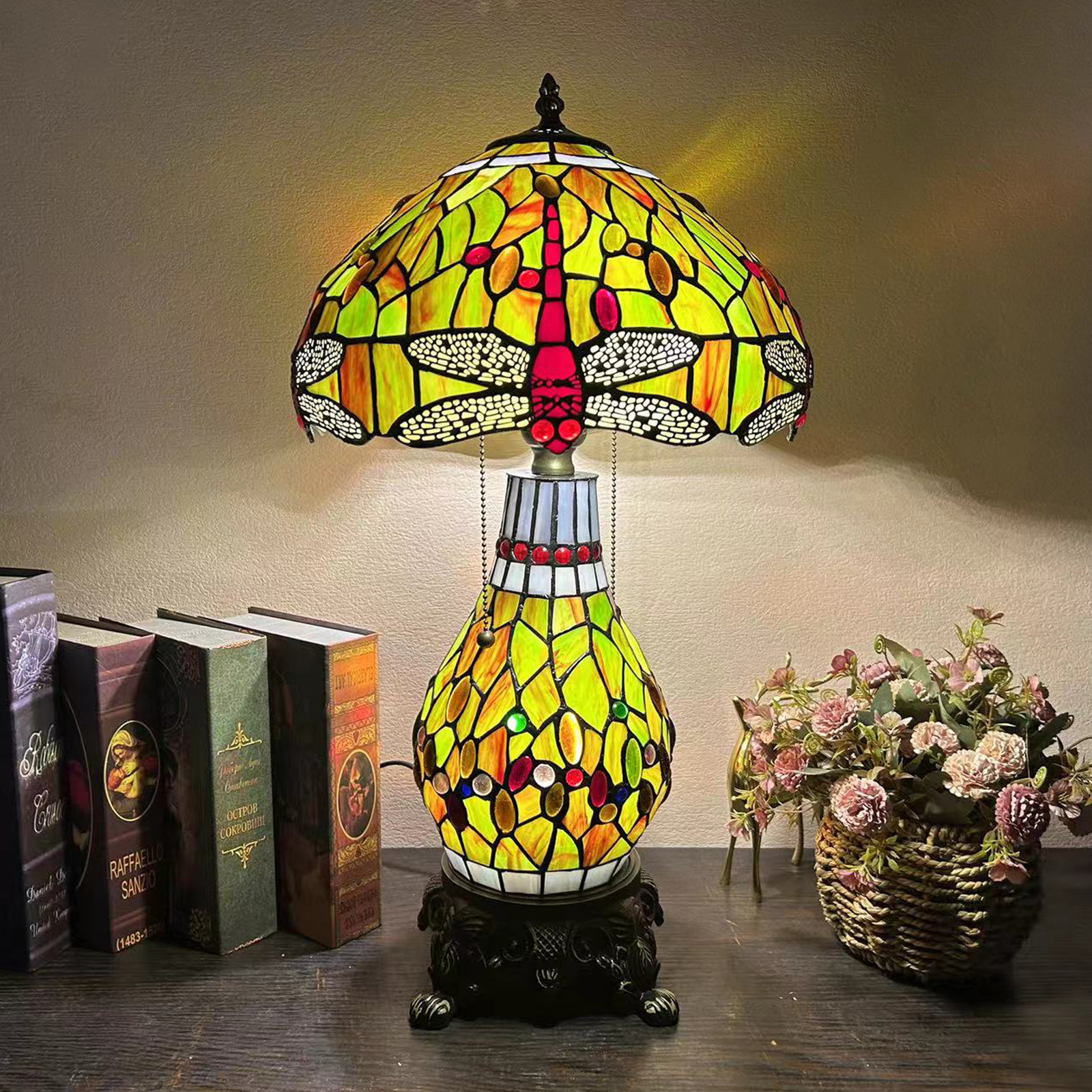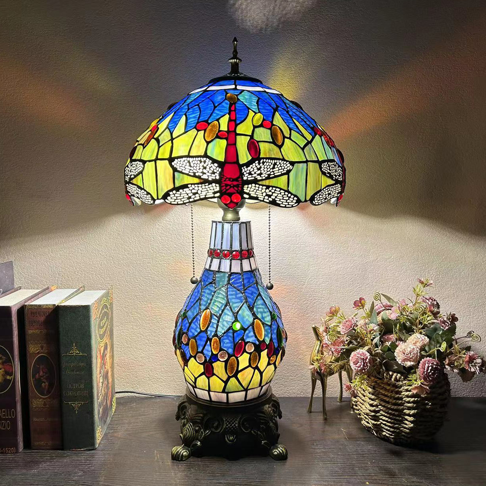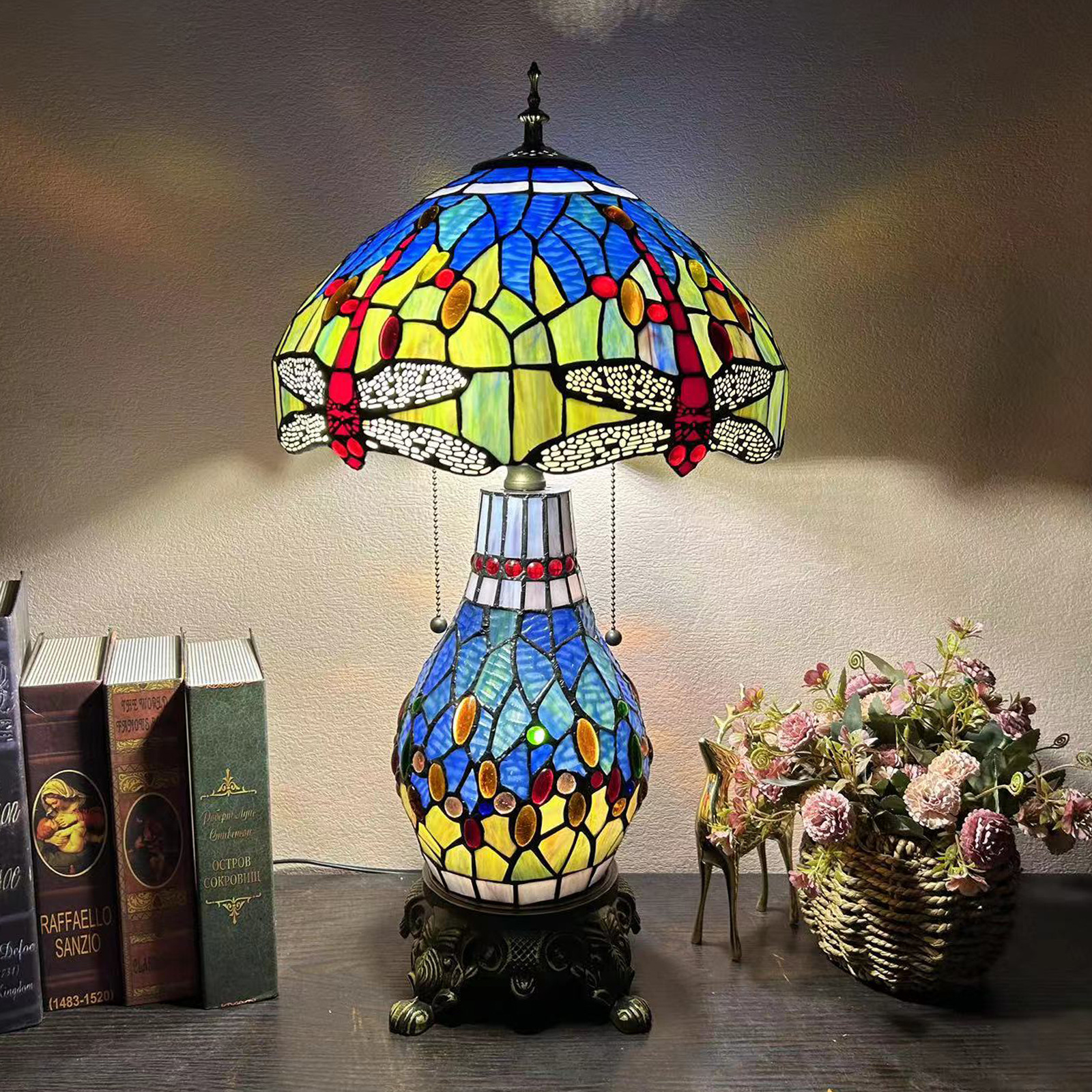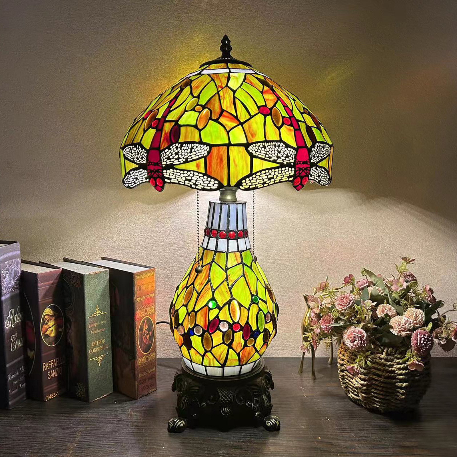 【材质】:TIFFANY彩色玻璃灯罩+锌合金底座