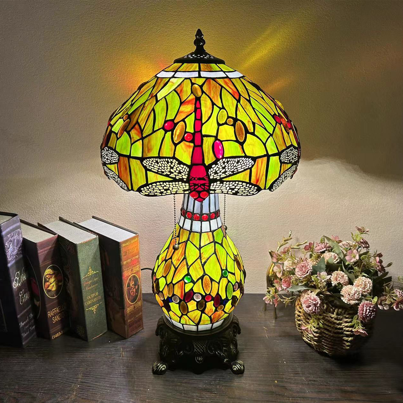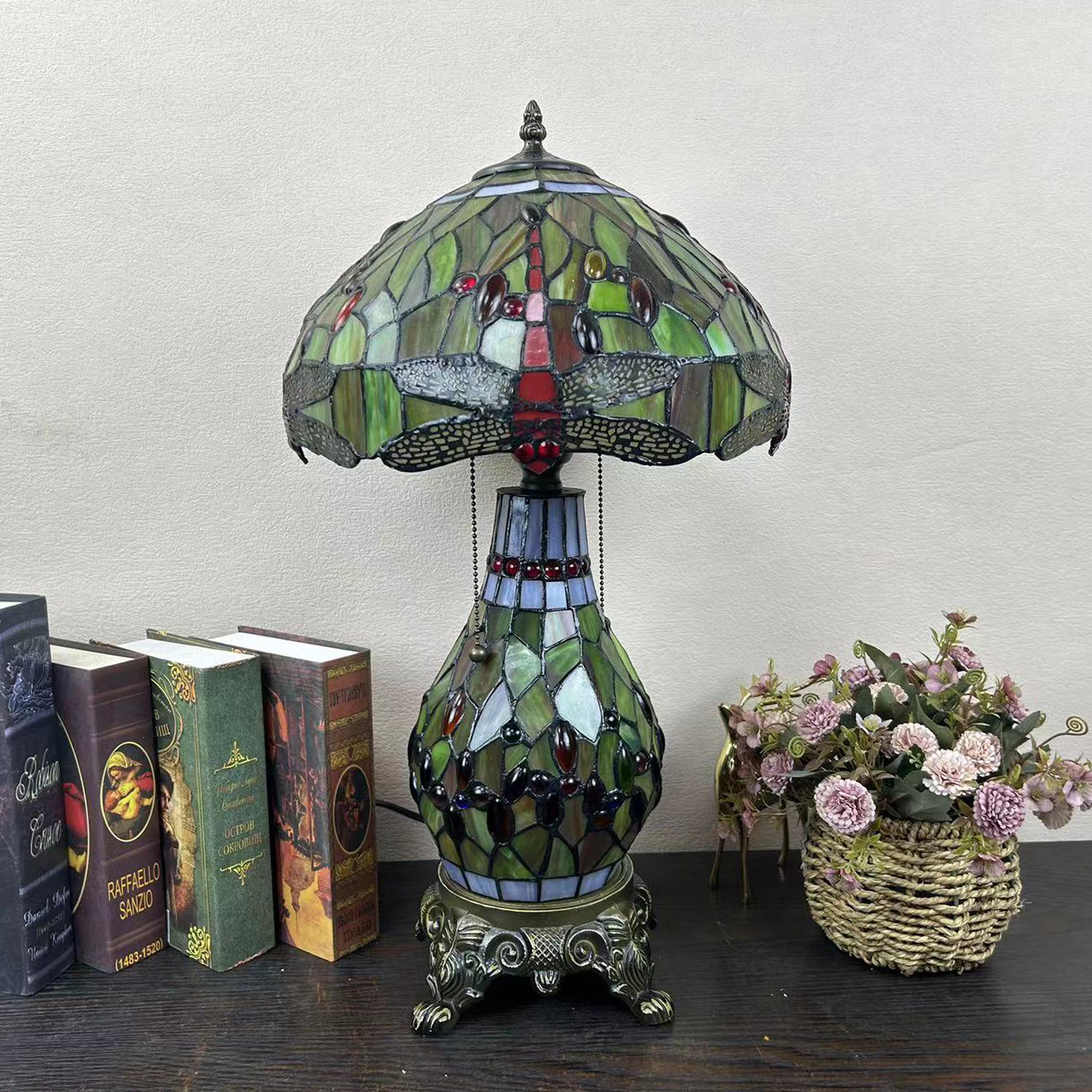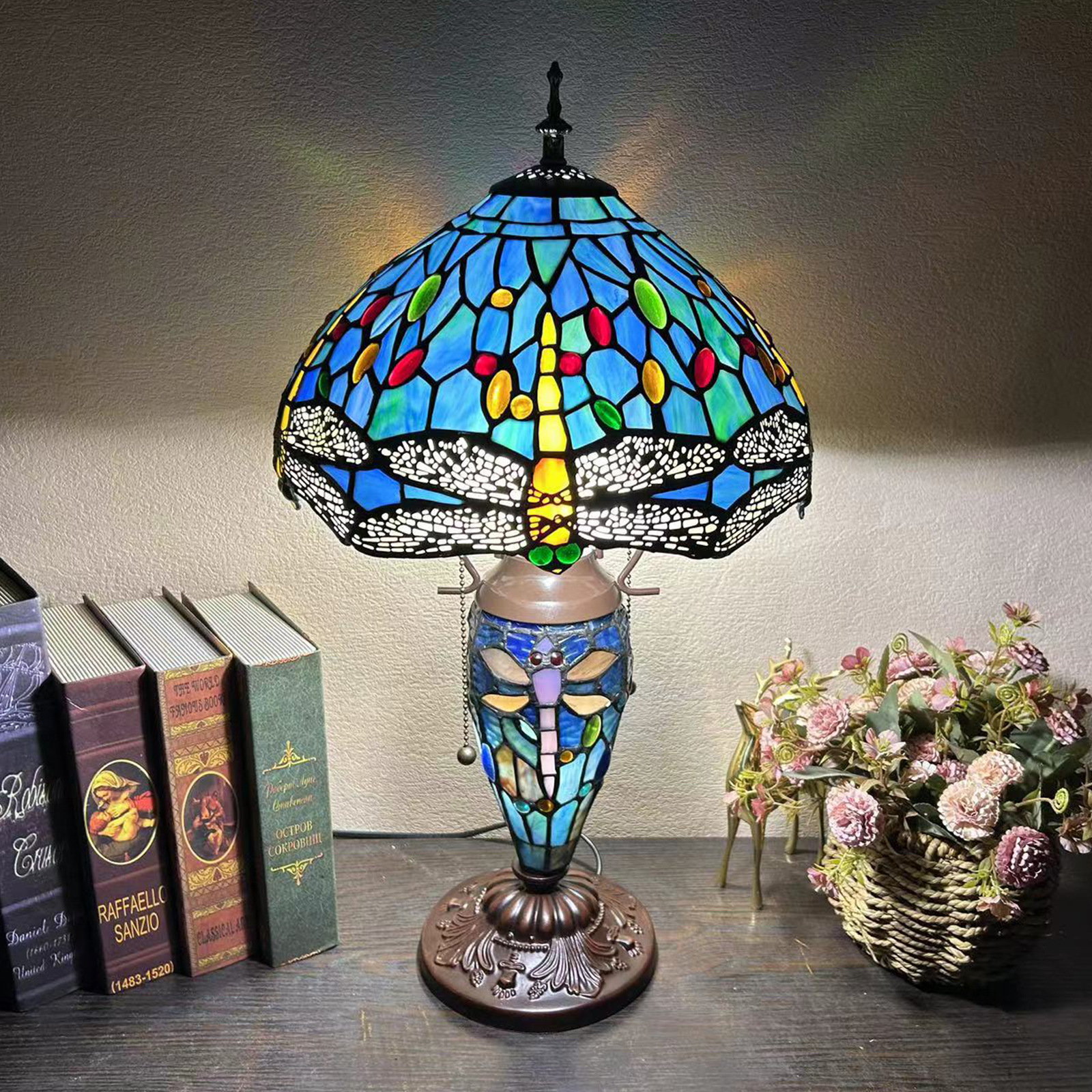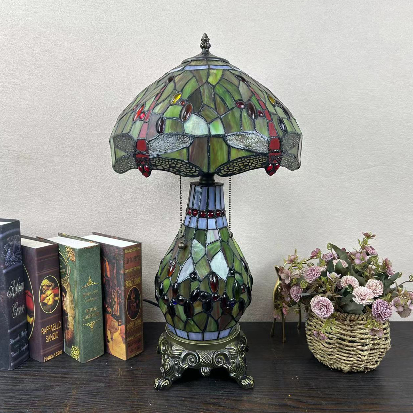 【材质】:TIFFANY彩色玻璃灯罩+锌合金底座