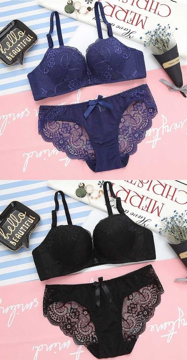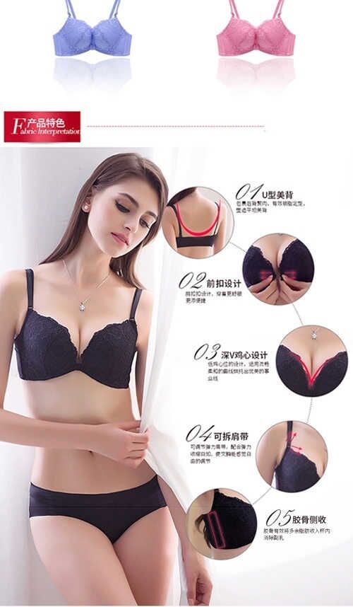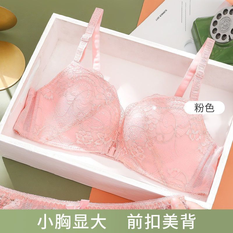 앞 버클 무선 속옷 여성용 브래지어 세트 작은 가슴 가슴 가슴 섹시한 여성 레이스 앞 버클 브래지어스토어 가기