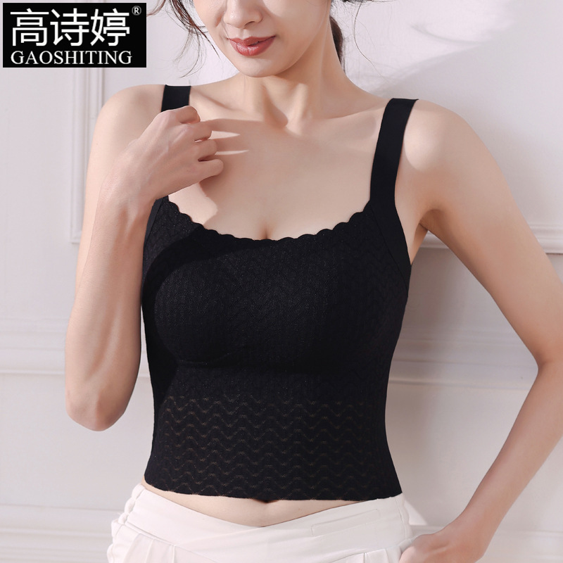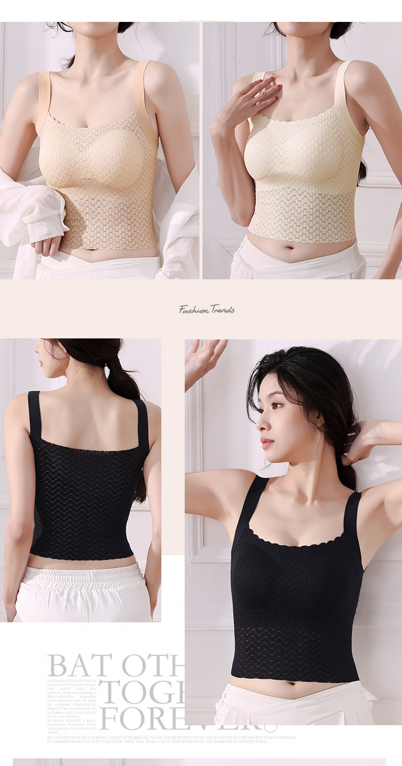뜨거운 소녀 튜브 탑 뷰티 백베이스 고정 컵 스퀘어 칼라 레이스 캐미솔 여성 속옷 가슴 패드스토어 가기