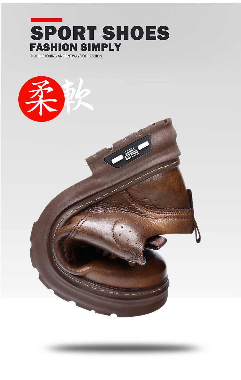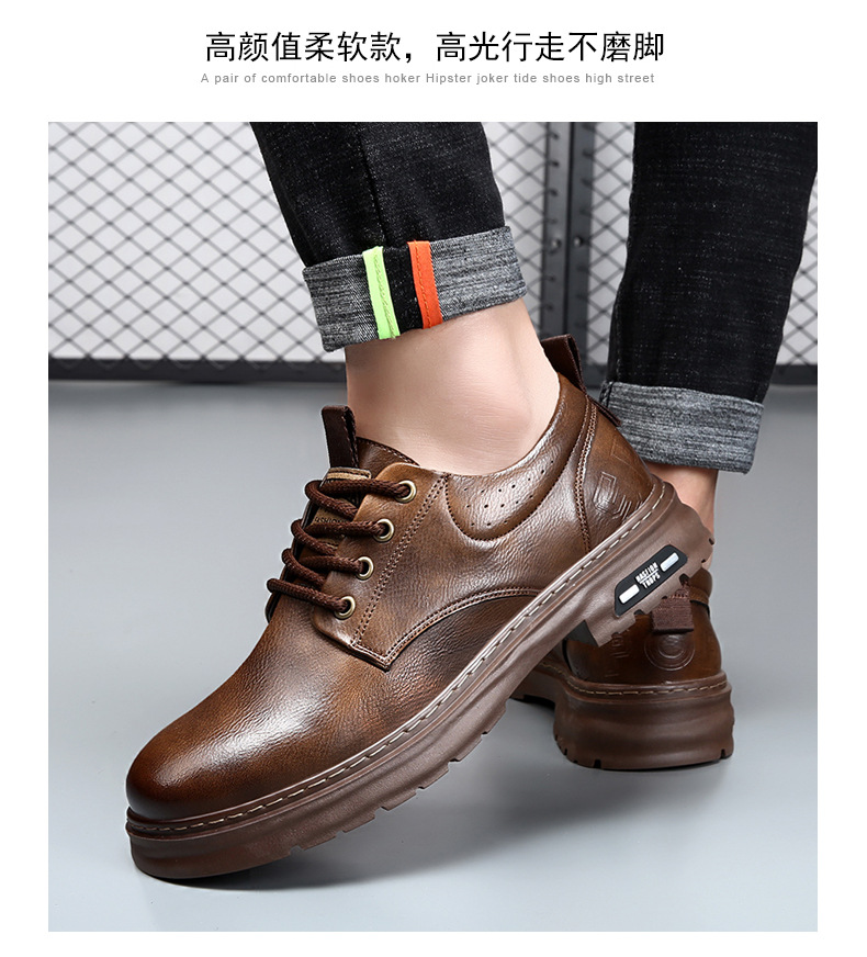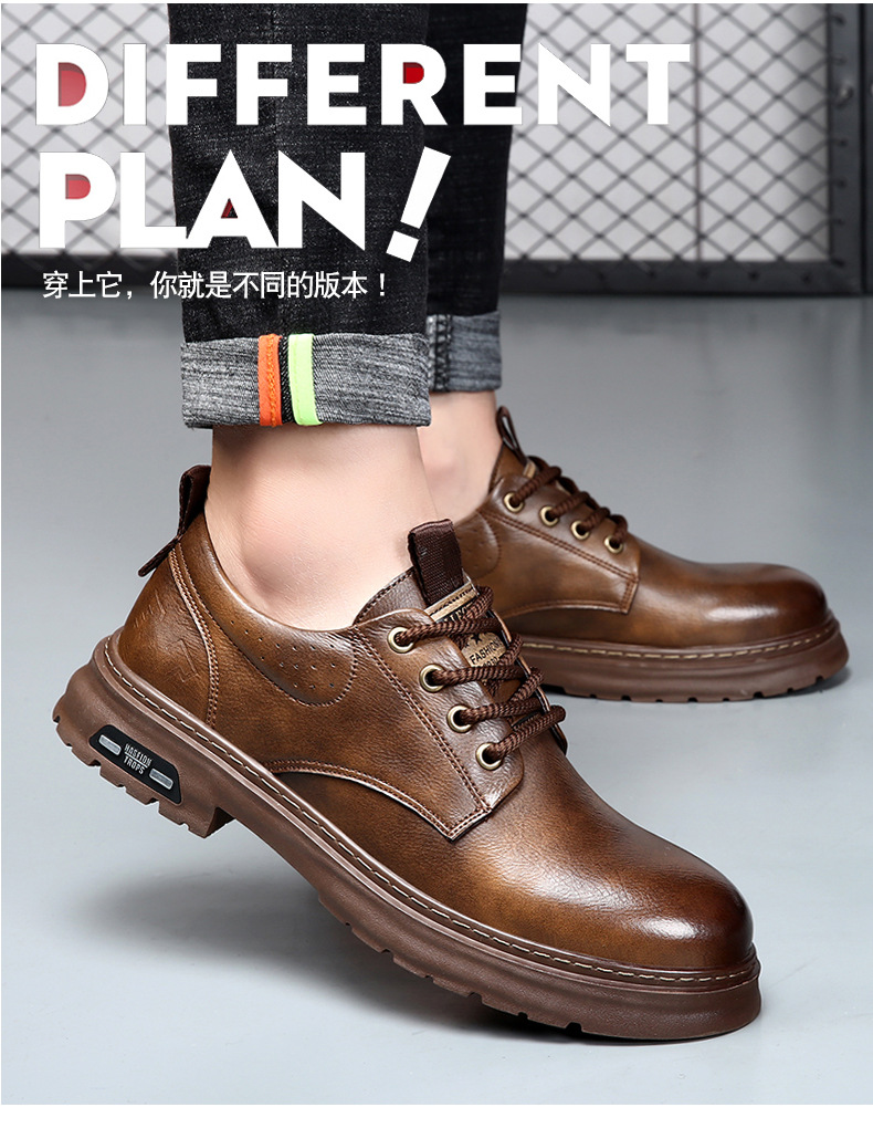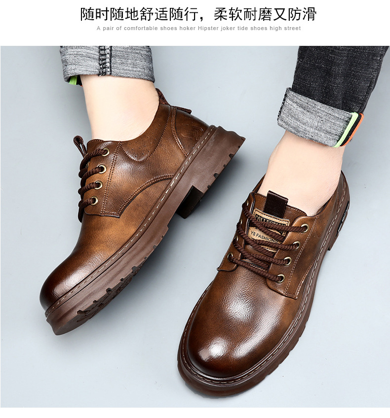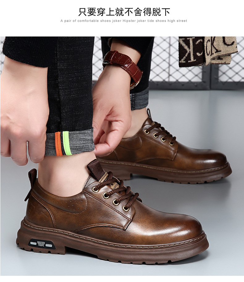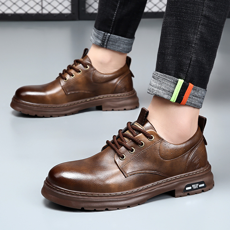 2025 가을 남성 가죽 신발, 천연 가죽 캐주얼 아웃도어 신발, 남성 트렌디 영국 스타일 작업복 레트로 남성 신발