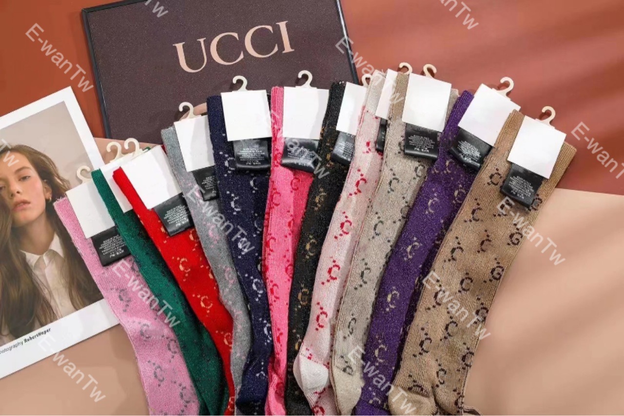 인터넷 유명 인사 같은 스타일의 양말 편지 밝은 실크 골드와 실버 실크 더블 바늘 스타킹 종아리 양말 유행 패션 무릎 길이 양말스토어 가기