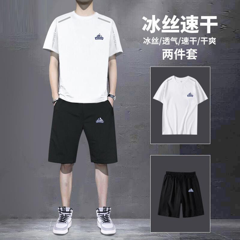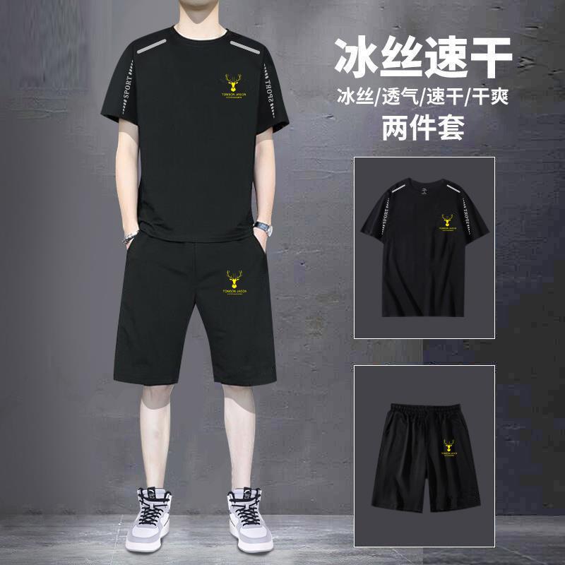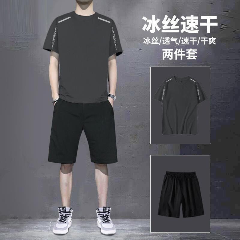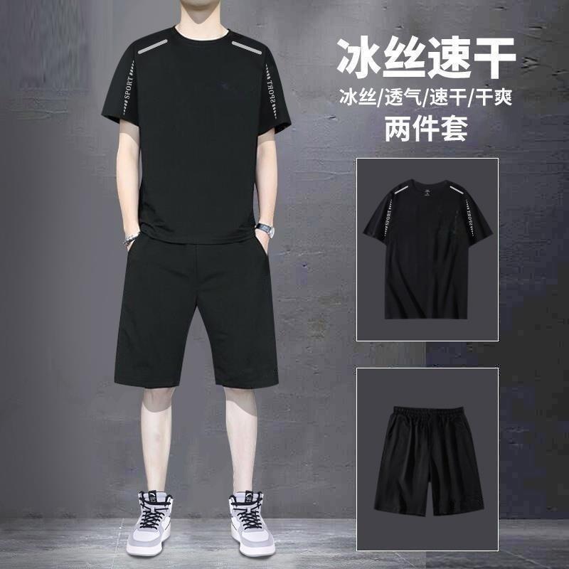 [선택] 스포츠 세트 여름 아이스 실크 신속 건조 반바지 여름 남자 달리기 빠른 건조 세트 반팔 운동복스토어 가기