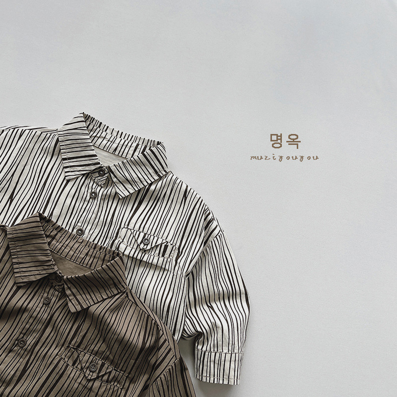 한국 스타일 ~ 아동 셔츠 2025 봄 소년 세로 줄무늬 맞춤형 탑 여성 일본 한국 스타일 유행 아동 의류스토어 가기