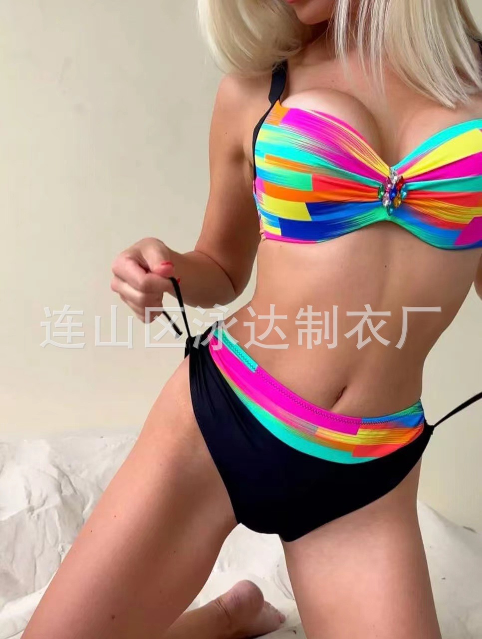 수영 2023 새로운 수영복 유럽과 미국의 비키니 섹시한 비키니 여성 수영복 아마존 국경 인쇄