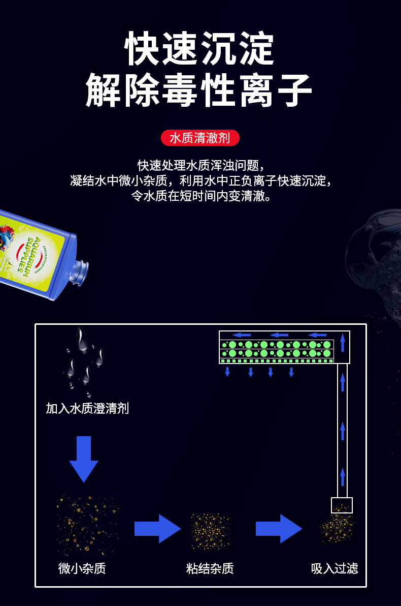 수족관 물 정화 에이전트 수질 명확화 에이전트 깨끗한 살균 및 정화 물 설명 수족관 공급 물고기를위한 물 교환 없음
