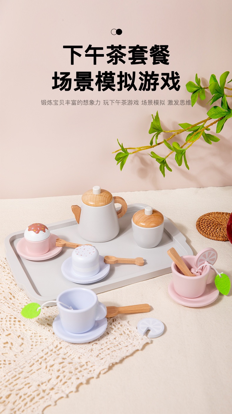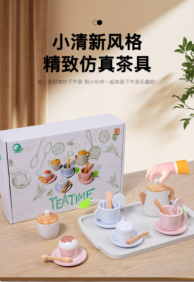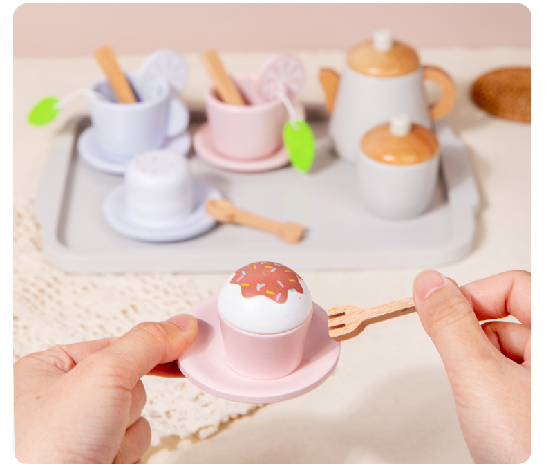 국경 간 특별 목조 시뮬레이션 놀이 집 디저트 페이스트리 애프터눈 티 장난감 세트 트레이 티 세트 홈 와인