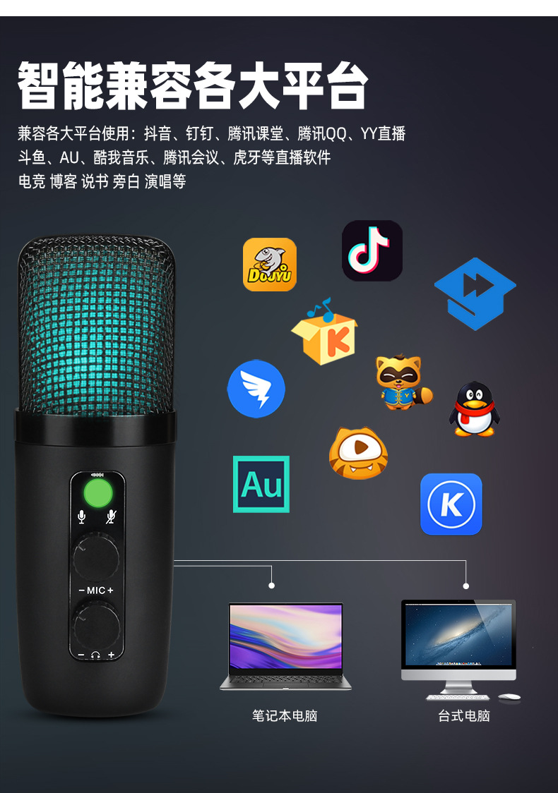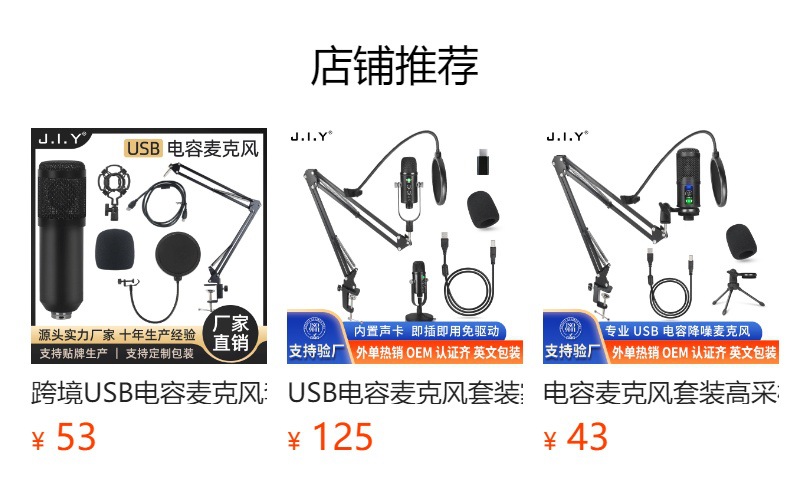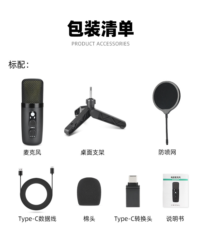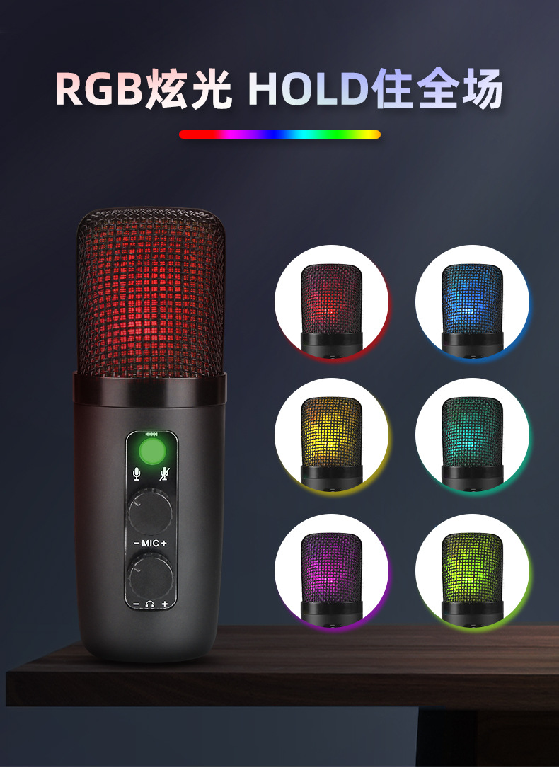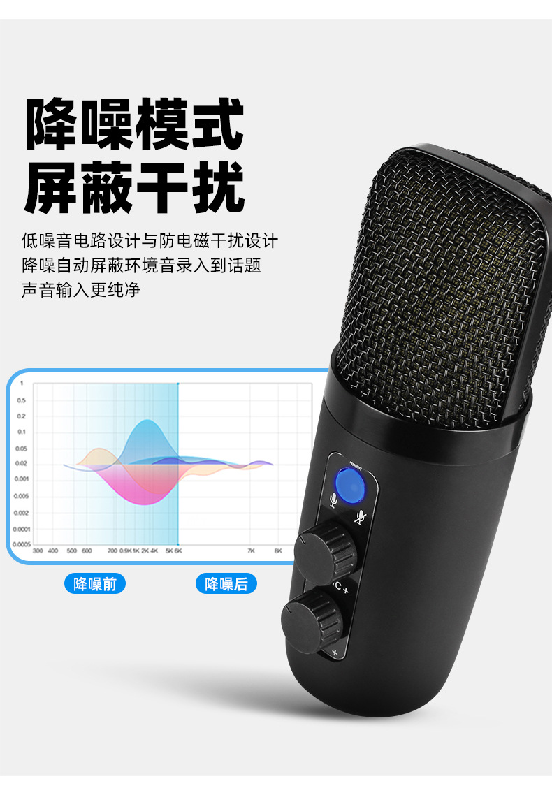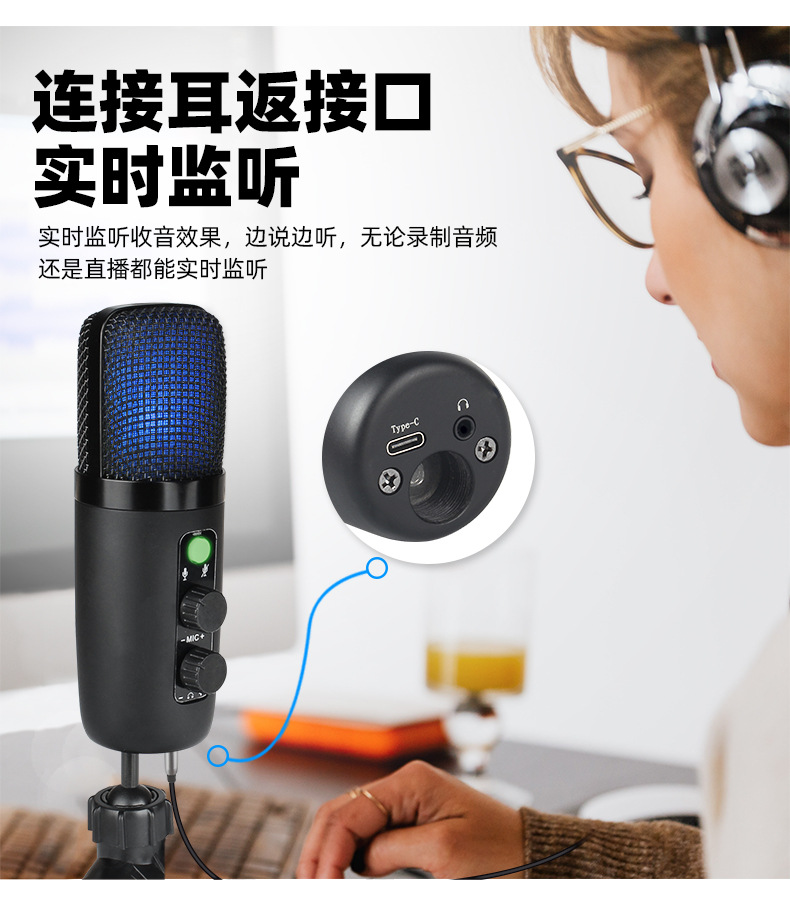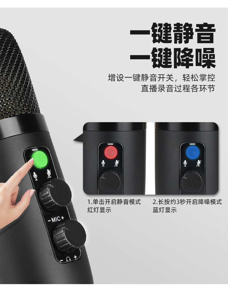 높은 샘플링 USB 콘덴서 마이크 세트 홈 컴퓨터 녹음 게임 모니터 소음 감소 유선 마이크 국경스토어 가기