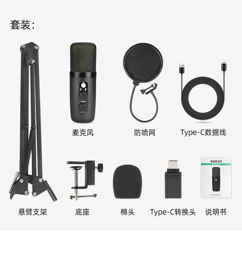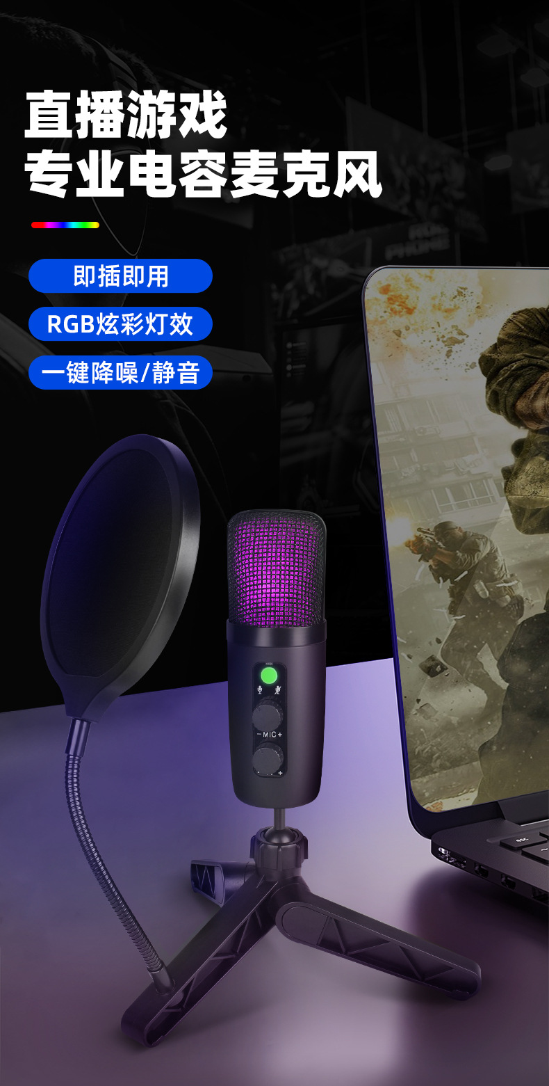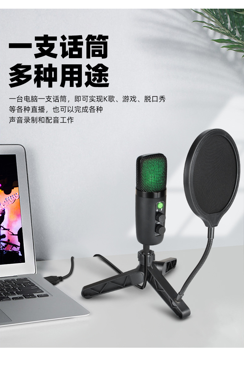 높은 샘플링 USB 콘덴서 마이크 세트 홈 컴퓨터 녹음 게임 모니터 소음 감소 유선 마이크 국경
