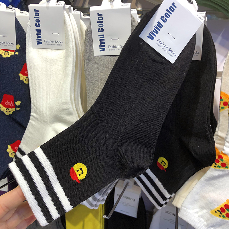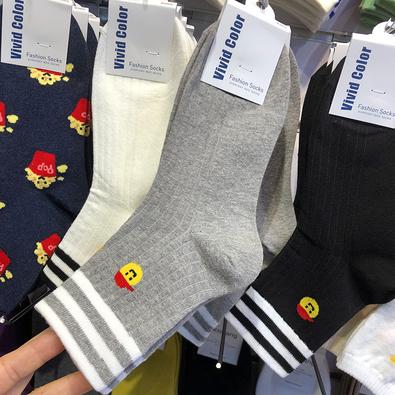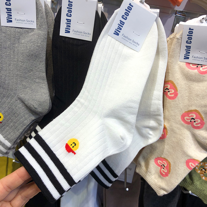 한국 수입 양말 2024 이른 봄 새로운 여성 양말 3 바 줄무늬 TB 스포츠 면 양말 만화 작은 모자 중반 송아지스토어 가기