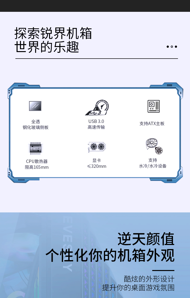 강화 유리 e 스포츠 게임 발광 ATX 메인 섀시를 통해 다이아몬드 날카로운 세계 컴퓨터 섀시 데스크탑 측면에 제품