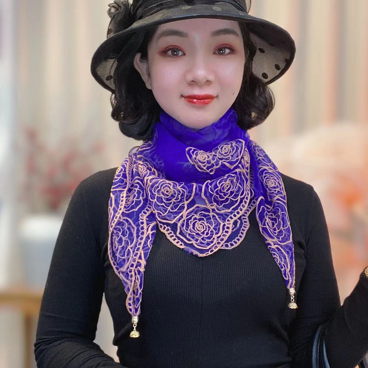 봄과 여름 새로운 마그네틱 버클 스카프 다기능 스카프 패션 조커 얇은 목 스카프 자수 사각형 스카프 도매스토어 가기