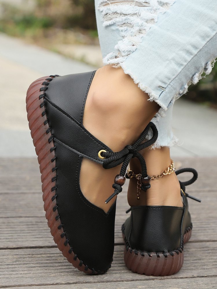 유럽과 미국의 대외 무역 2023 봄과 가을 영국 복고풍 작은 가죽 신발 라운드 발가락 빛 소프트 단독 캐주얼 신발 여성스토어 가기