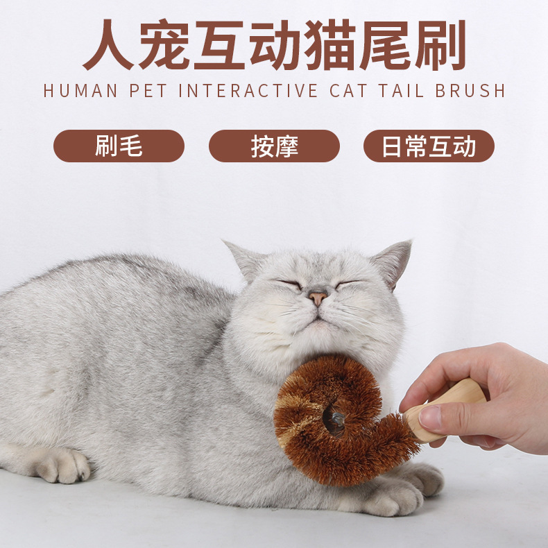 국경 새 애완 동물 대화 형 고양이 꼬리 브러시 마사지 빗 머리 고양이 빗 단단한 나무 손잡이 재고 머리 고양이 브러시스토어 가기