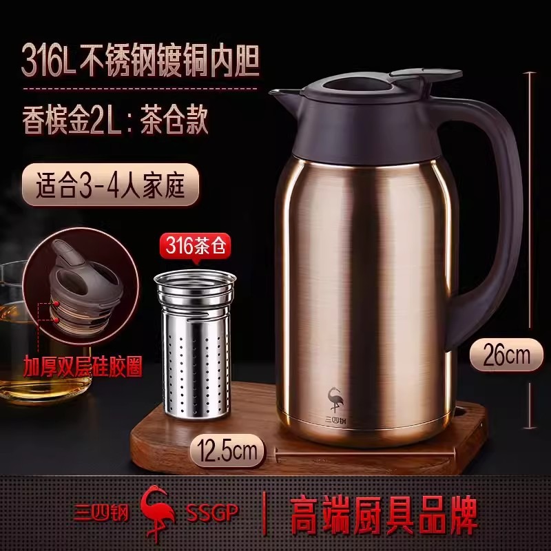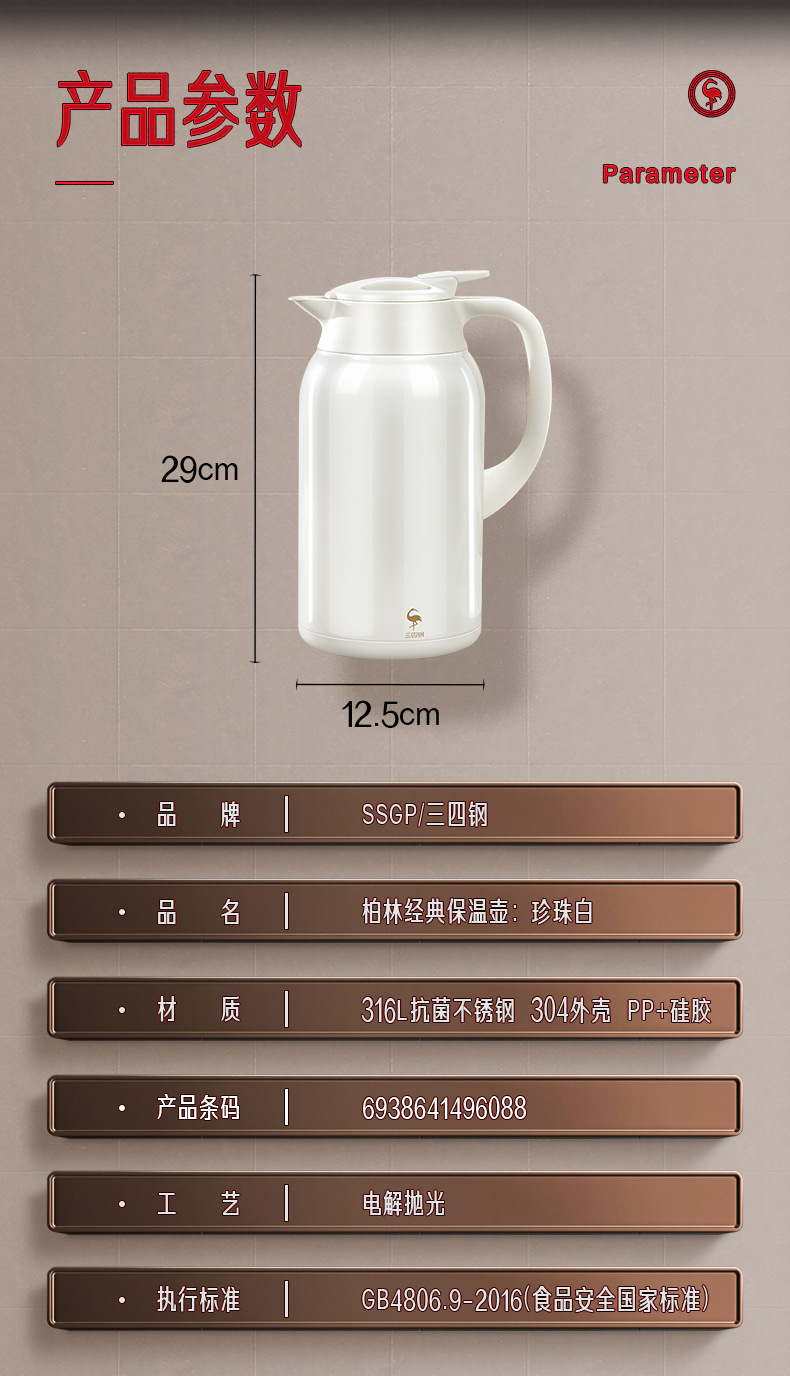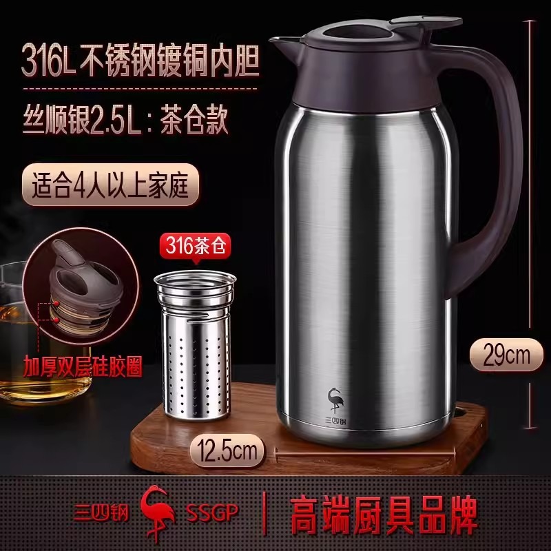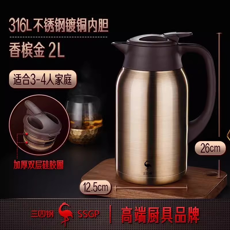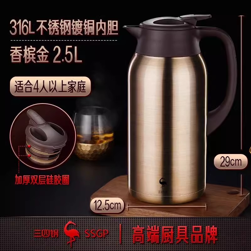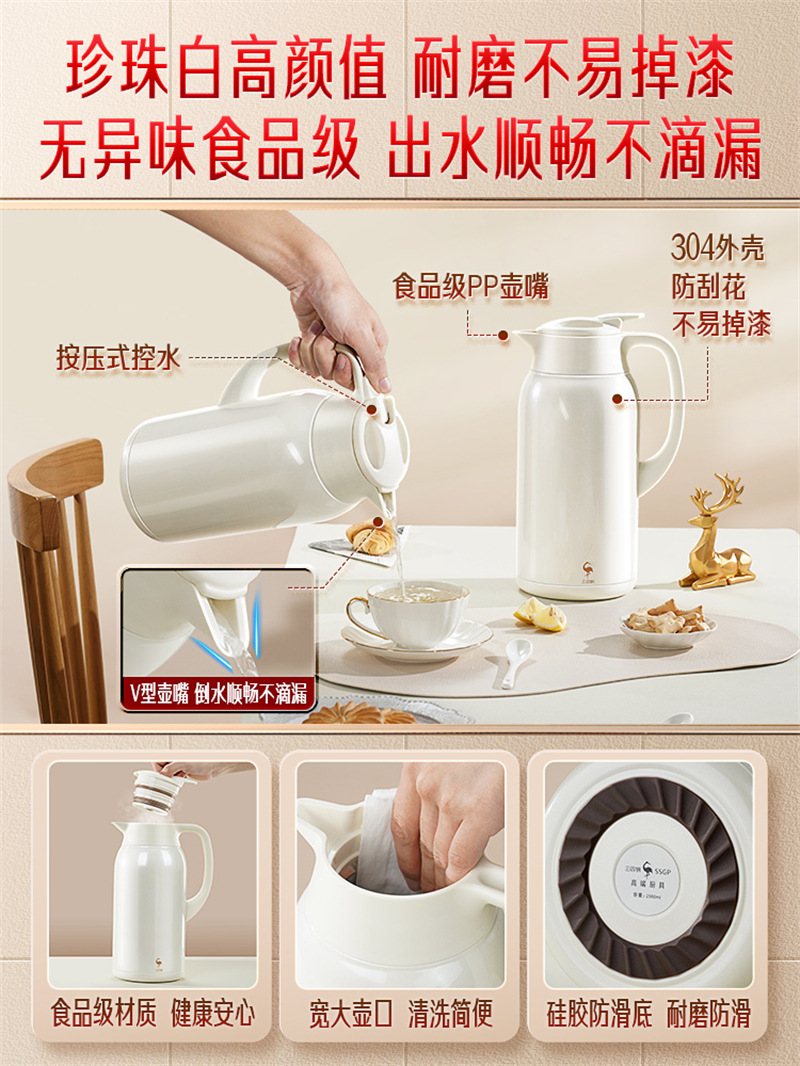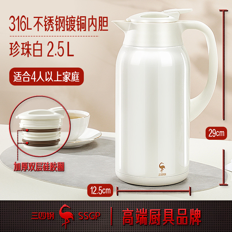 SSGP 보온병 스테인레스 스틸 316 가정용 주전자 보온병 호텔 물병 펄 화이트 보온병