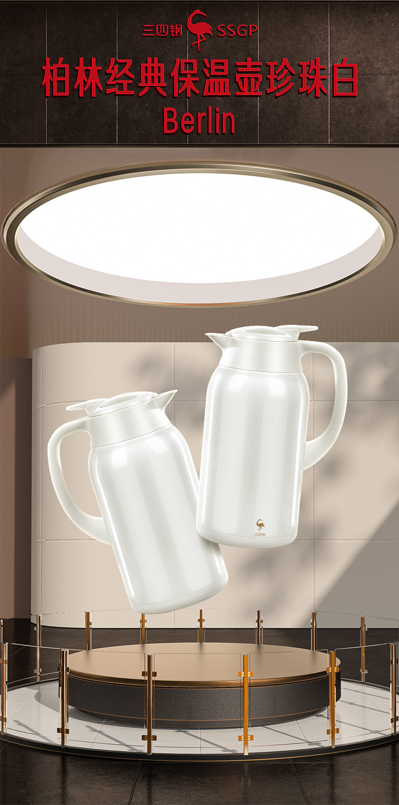 SSGP 보온병 스테인레스 스틸 316 가정용 주전자 보온병 호텔 물병 펄 화이트 보온병스토어 가기