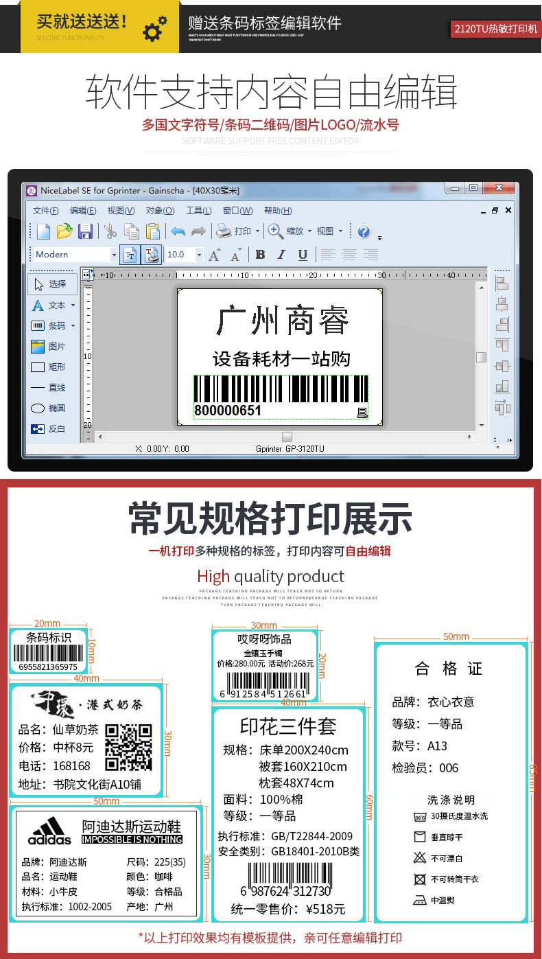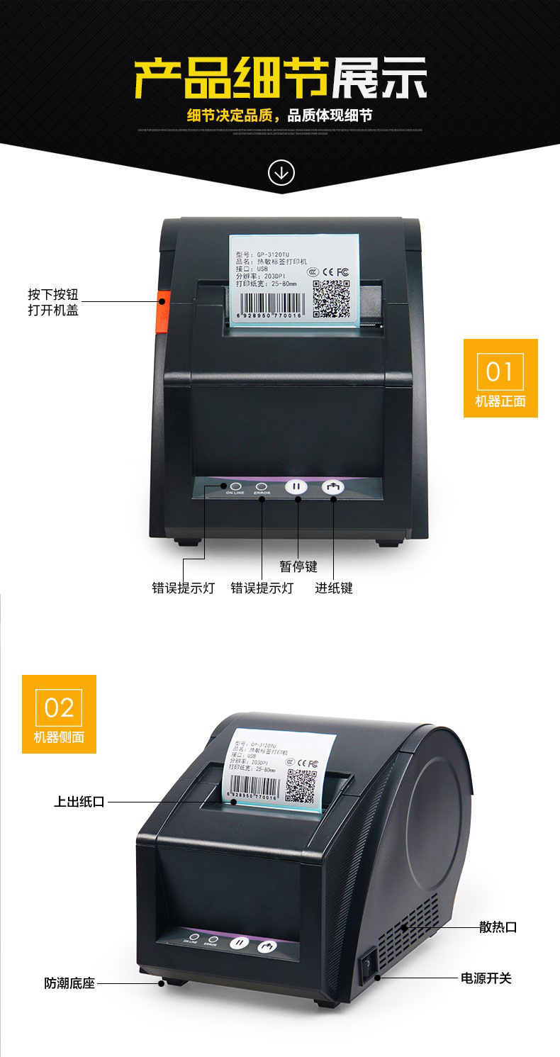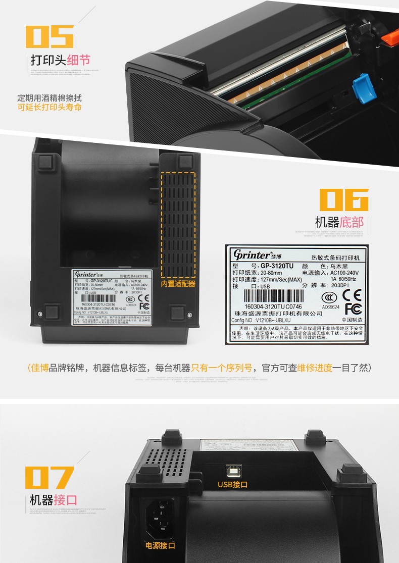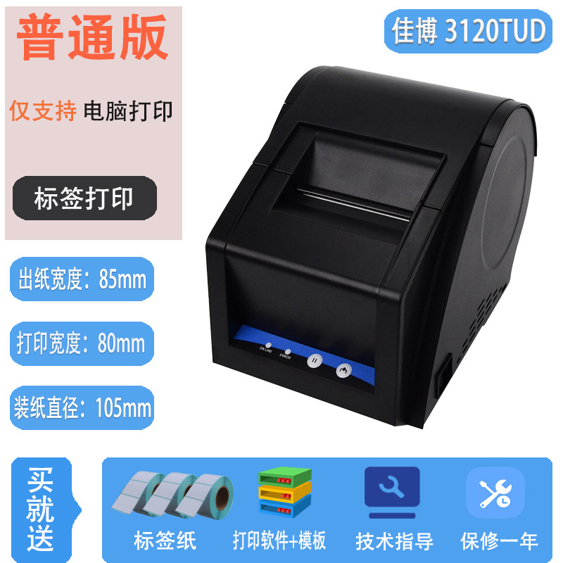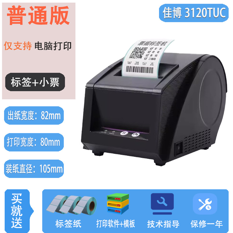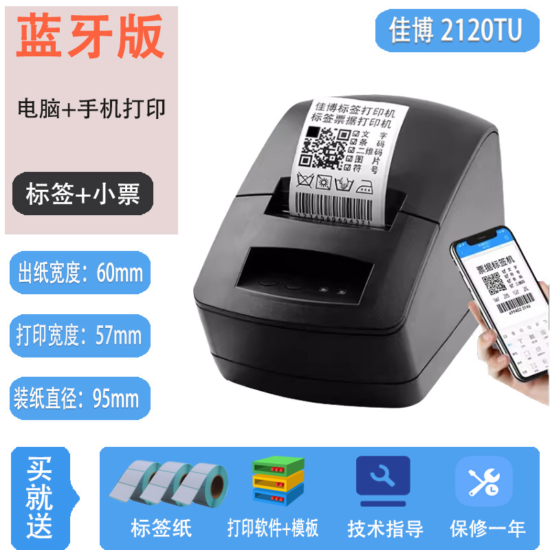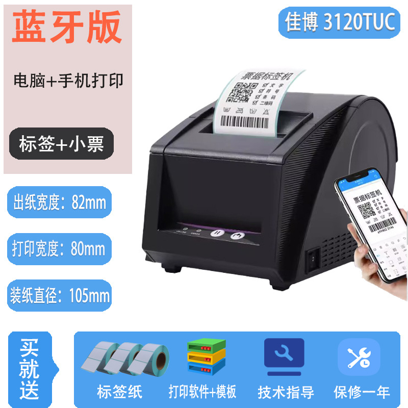 Jiabo GP3120TUC 라벨 프린터 열 바코드 스티커 의류 태그 슈퍼마켓 블루투스 프린터