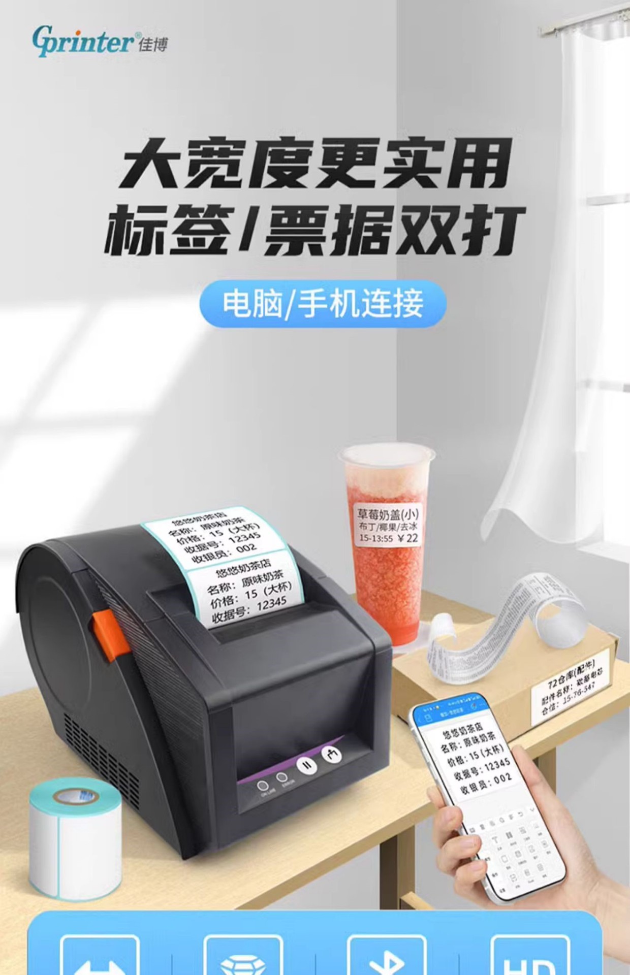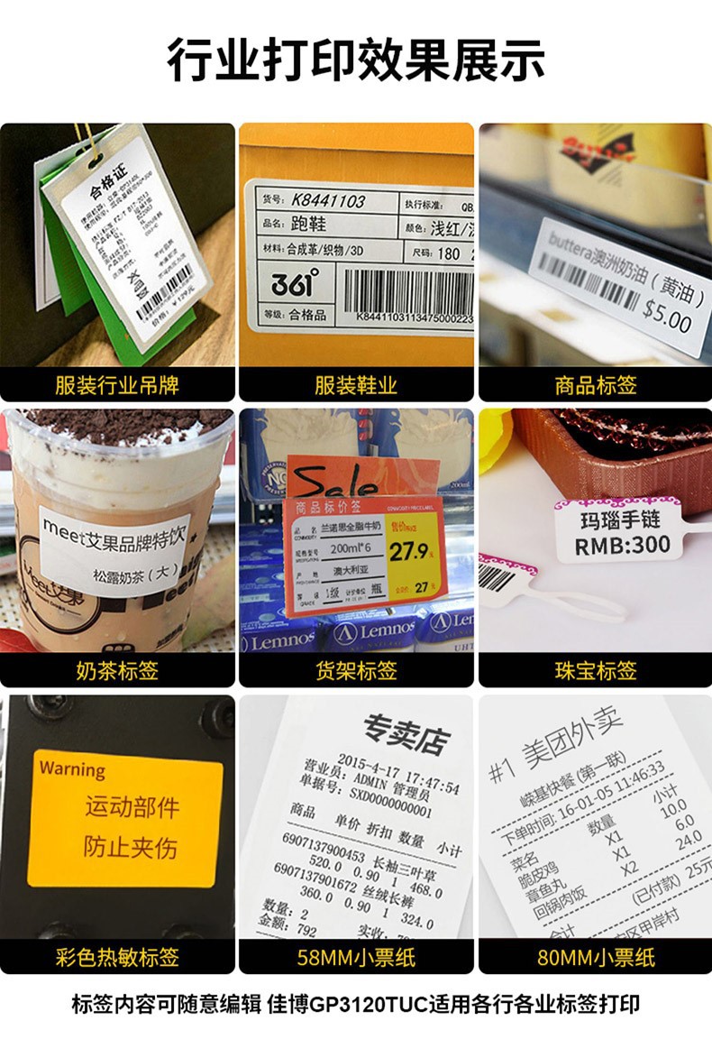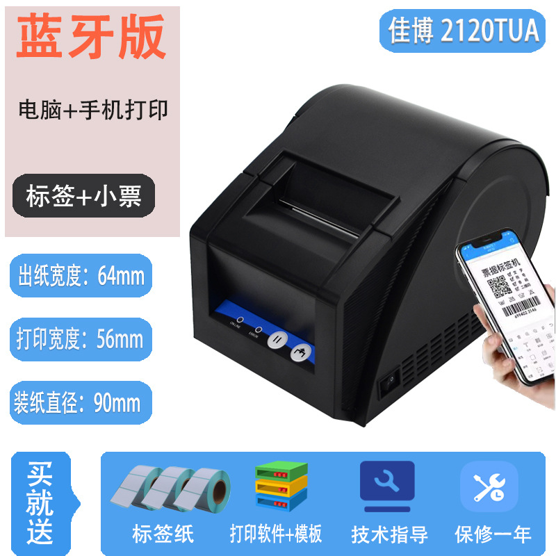 Jiabo GP3120TUC 라벨 프린터 열 바코드 스티커 의류 태그 슈퍼마켓 블루투스 프린터스토어 가기