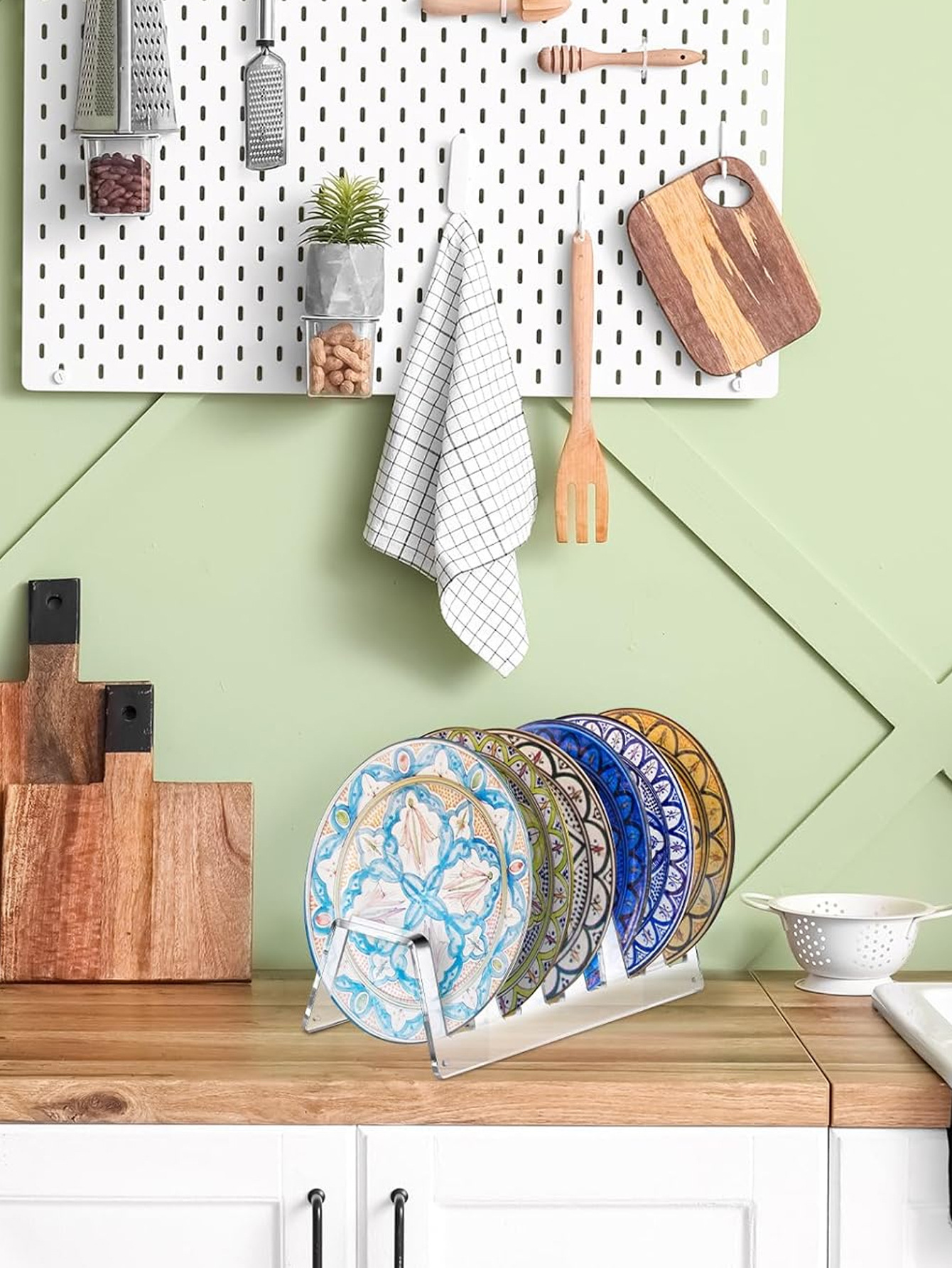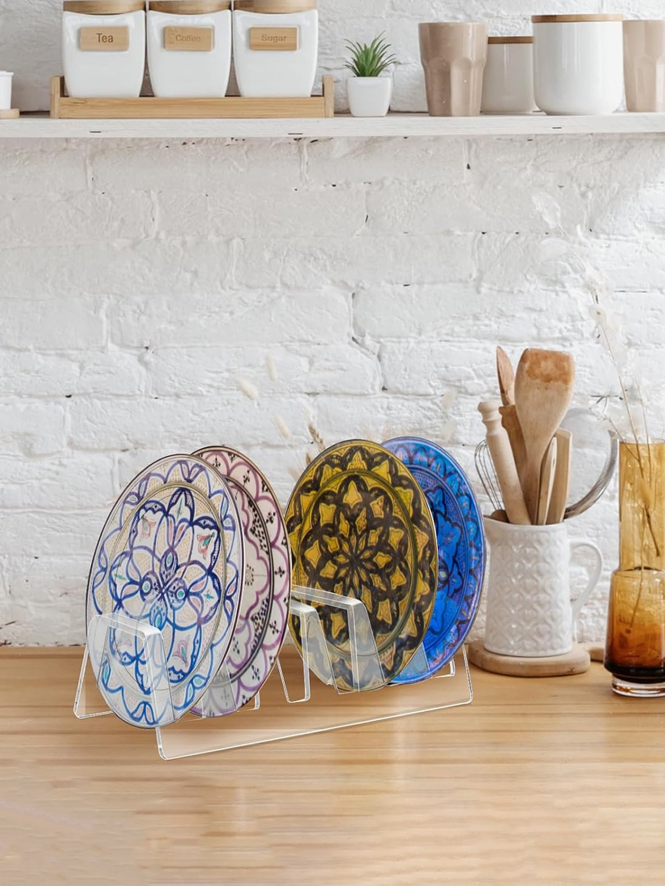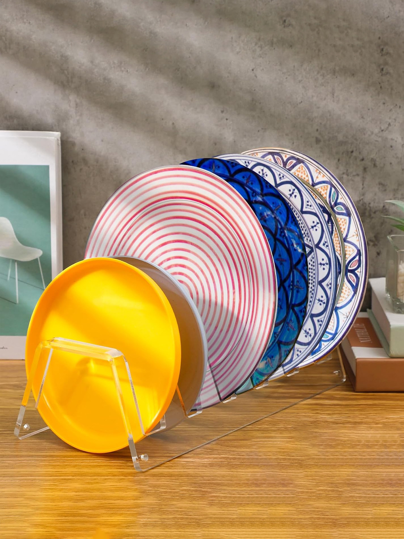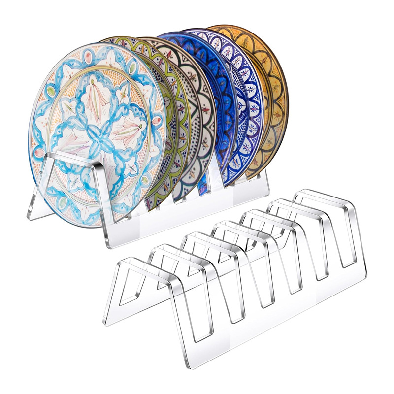 아크릴 플레이트 홀더 디스플레이 중국 식기 디스플레이 랙 6 슬롯 여러 플레이트 랙 주방
