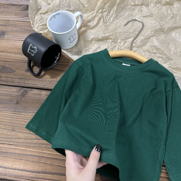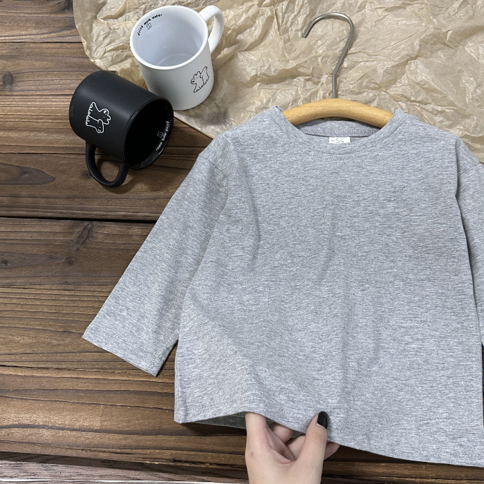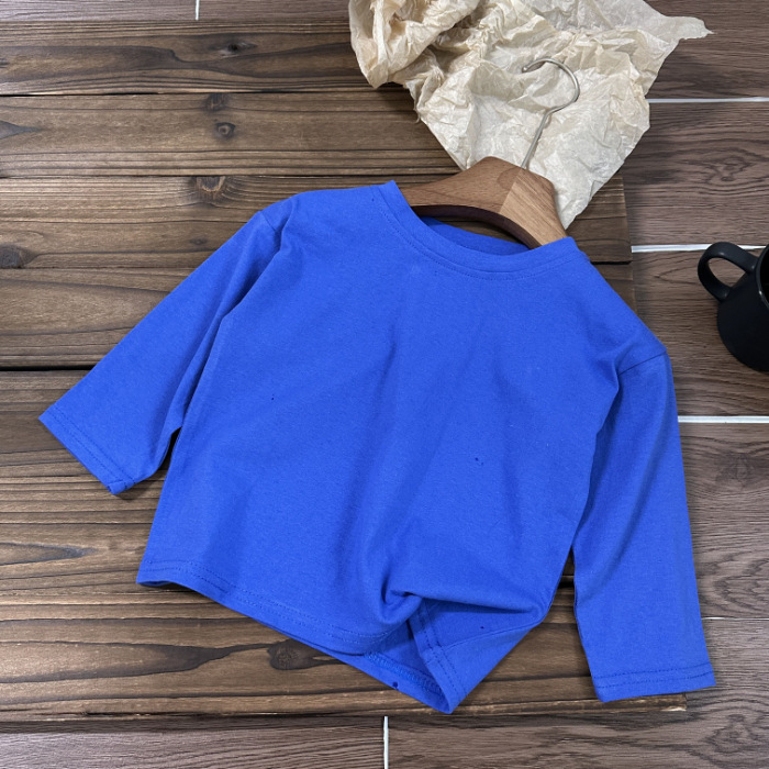 중소형 아동용 봄, 가을 의류 2025년 신상 순면 긴팔 티셔츠, 남녀 아기용 단색 바텀 셔츠, 드롭쉬핑스토어 가기