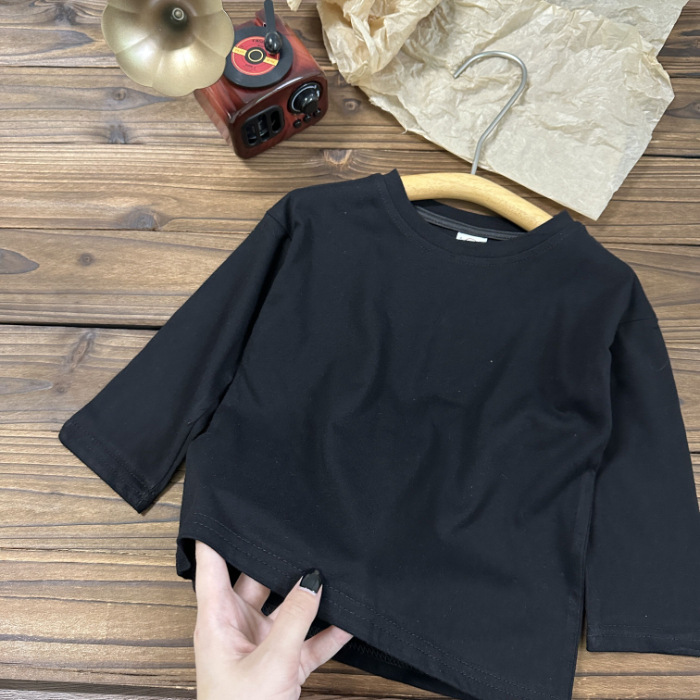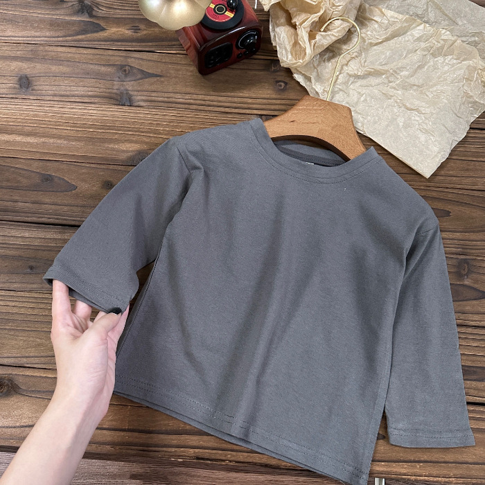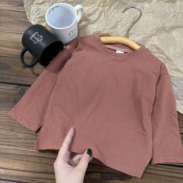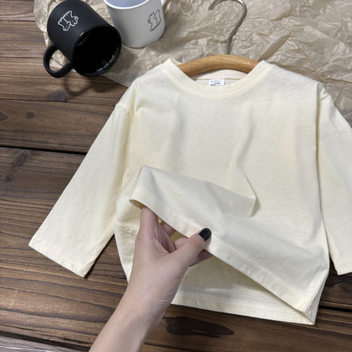 중소형 아동용 봄, 가을 의류 2025년 신상 순면 긴팔 티셔츠, 남녀 아기용 단색 바텀 셔츠, 드롭쉬핑