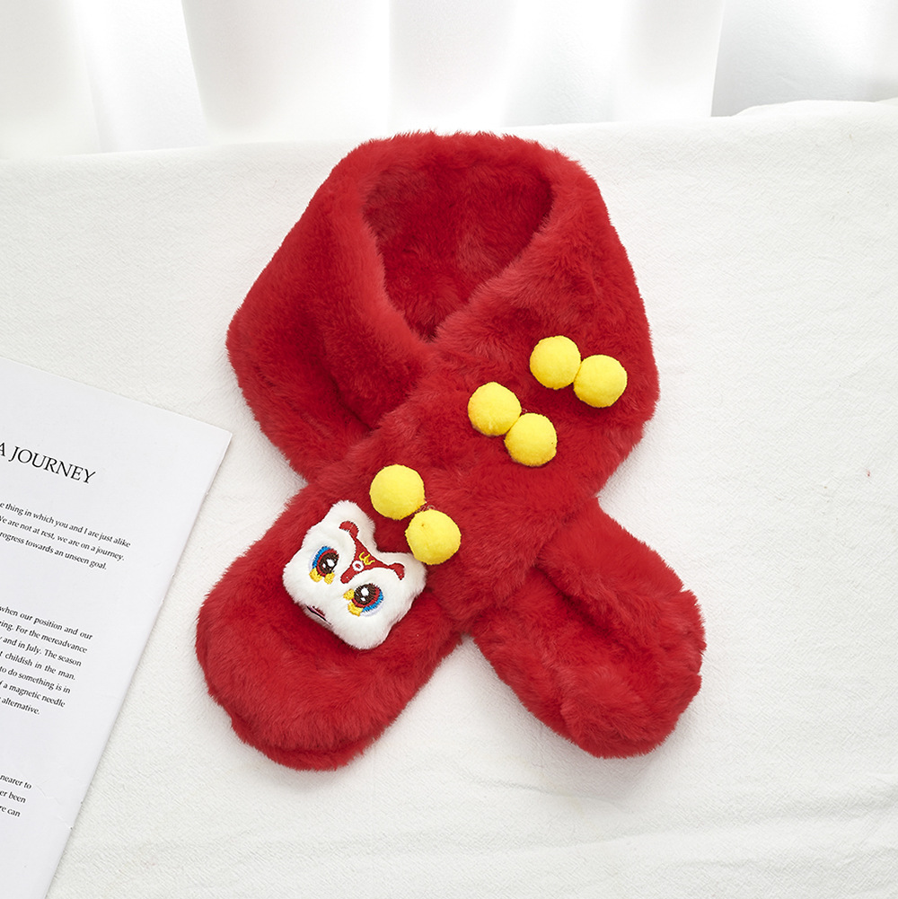 2025 년 새해 어린이 스카프 큰 붉은 선물 국가 스타일 중국 용 사자 댄스 스카프 봉제 크로스 아기 스카프스토어 가기