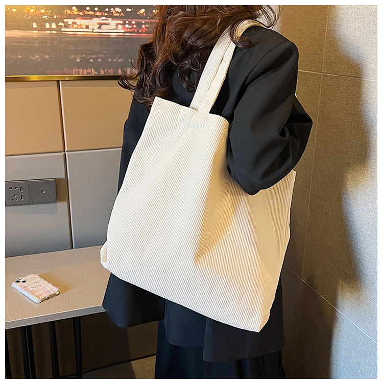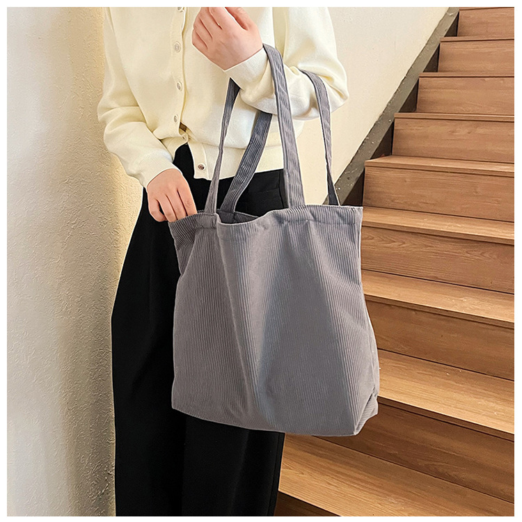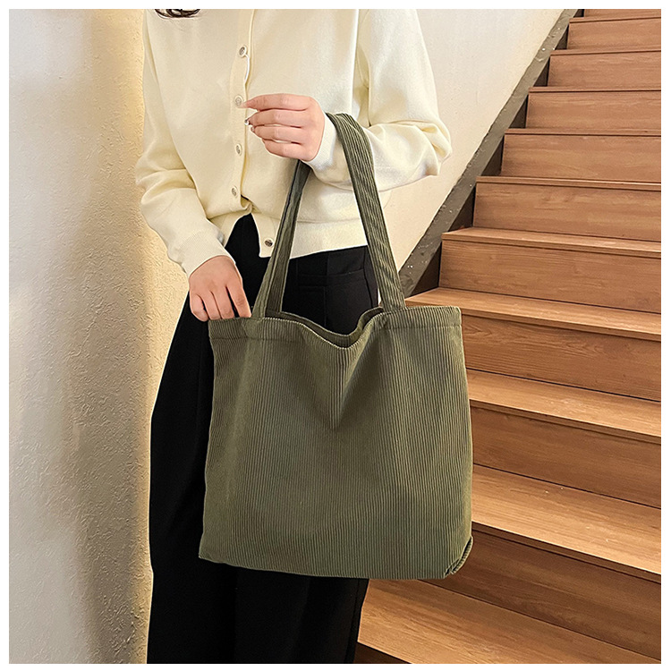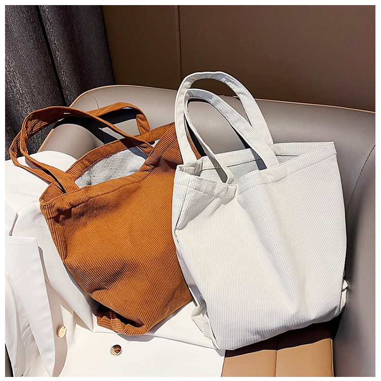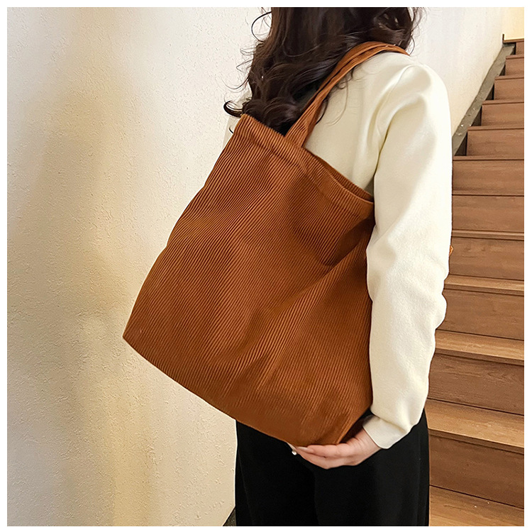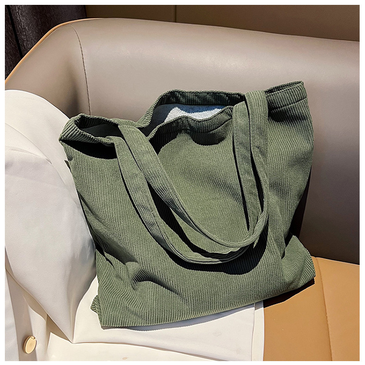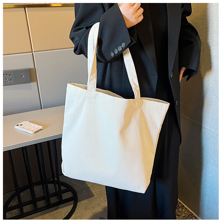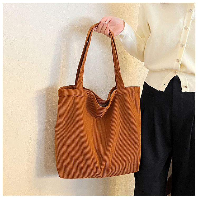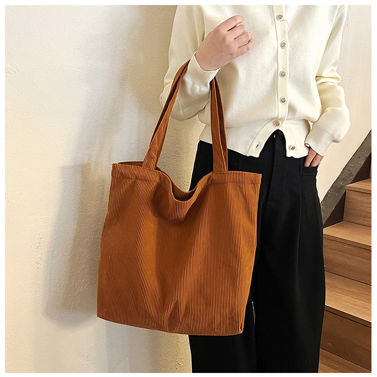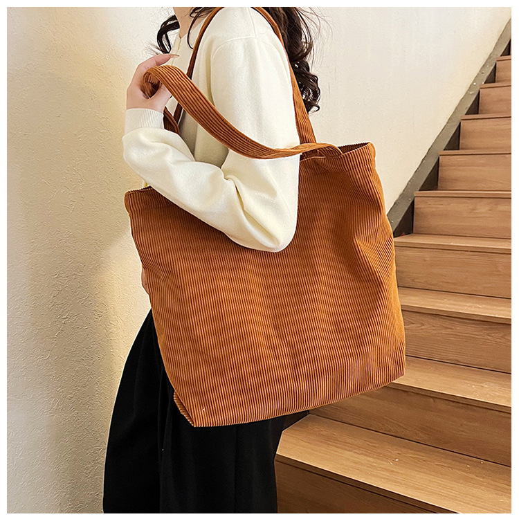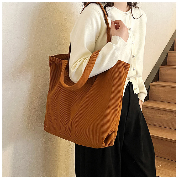 가을 겨울 대용량 코듀로이 토트백 심플하고 세련된 숄더백 단색 핸드백 직장 통근 여성용 가방스토어 가기