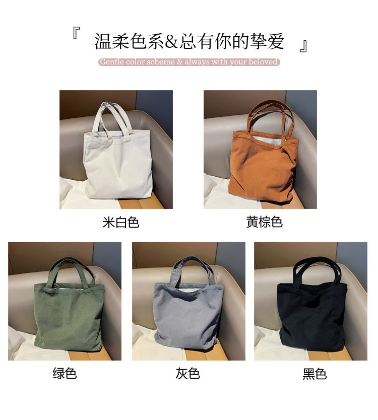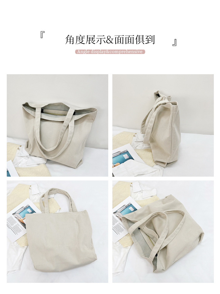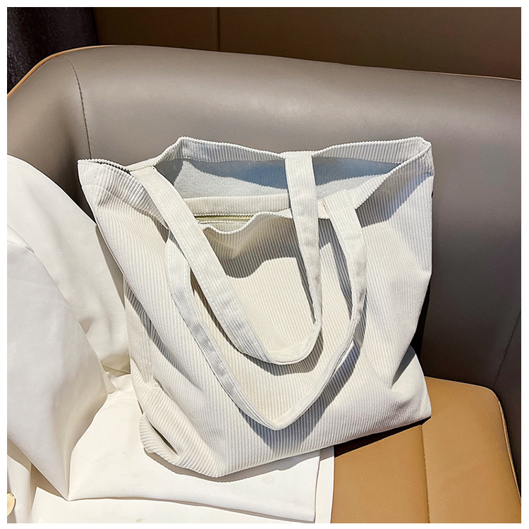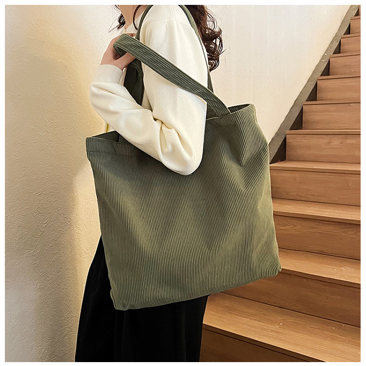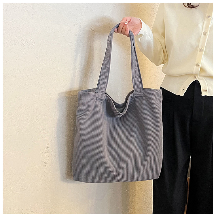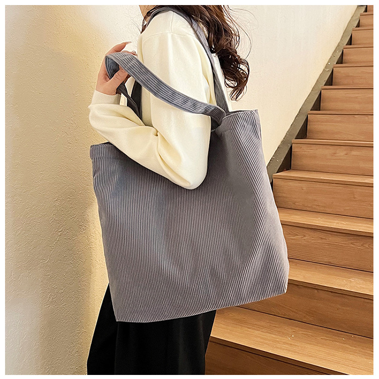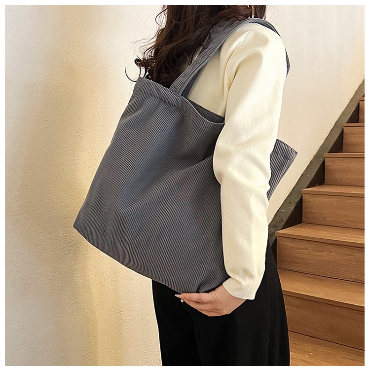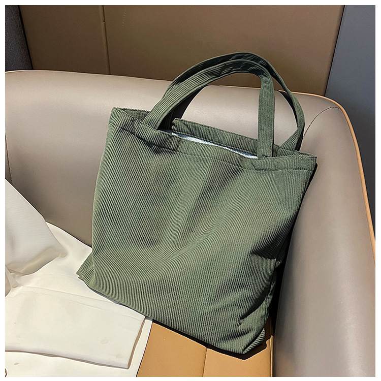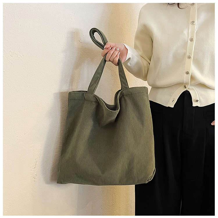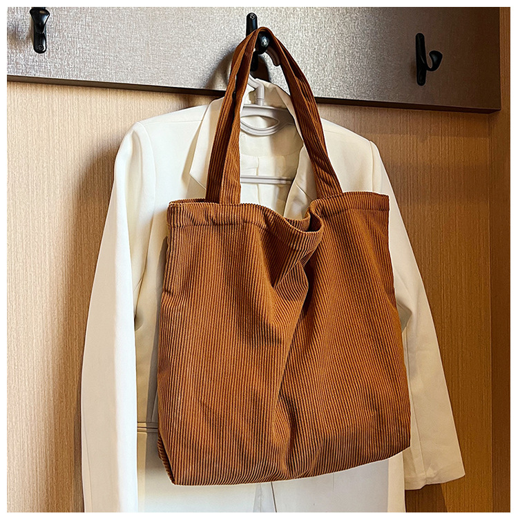 가을 겨울 대용량 코듀로이 토트백 심플하고 세련된 숄더백 단색 핸드백 직장 통근 여성용 가방스토어 가기