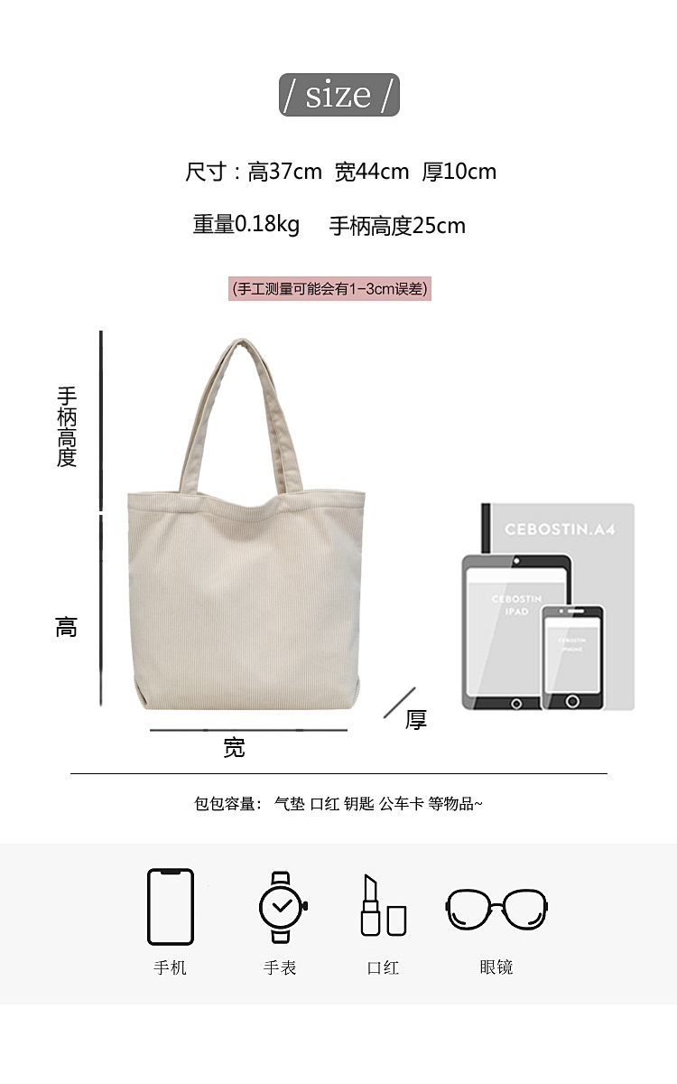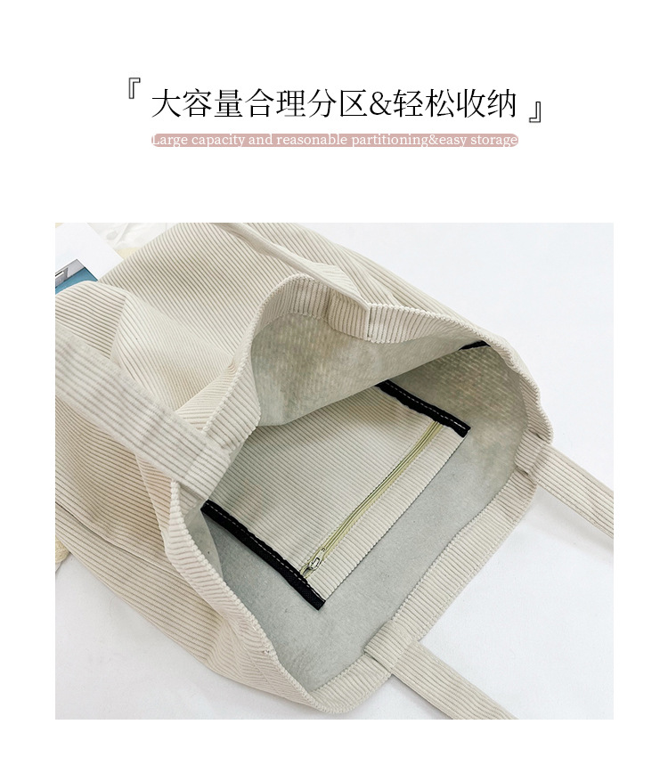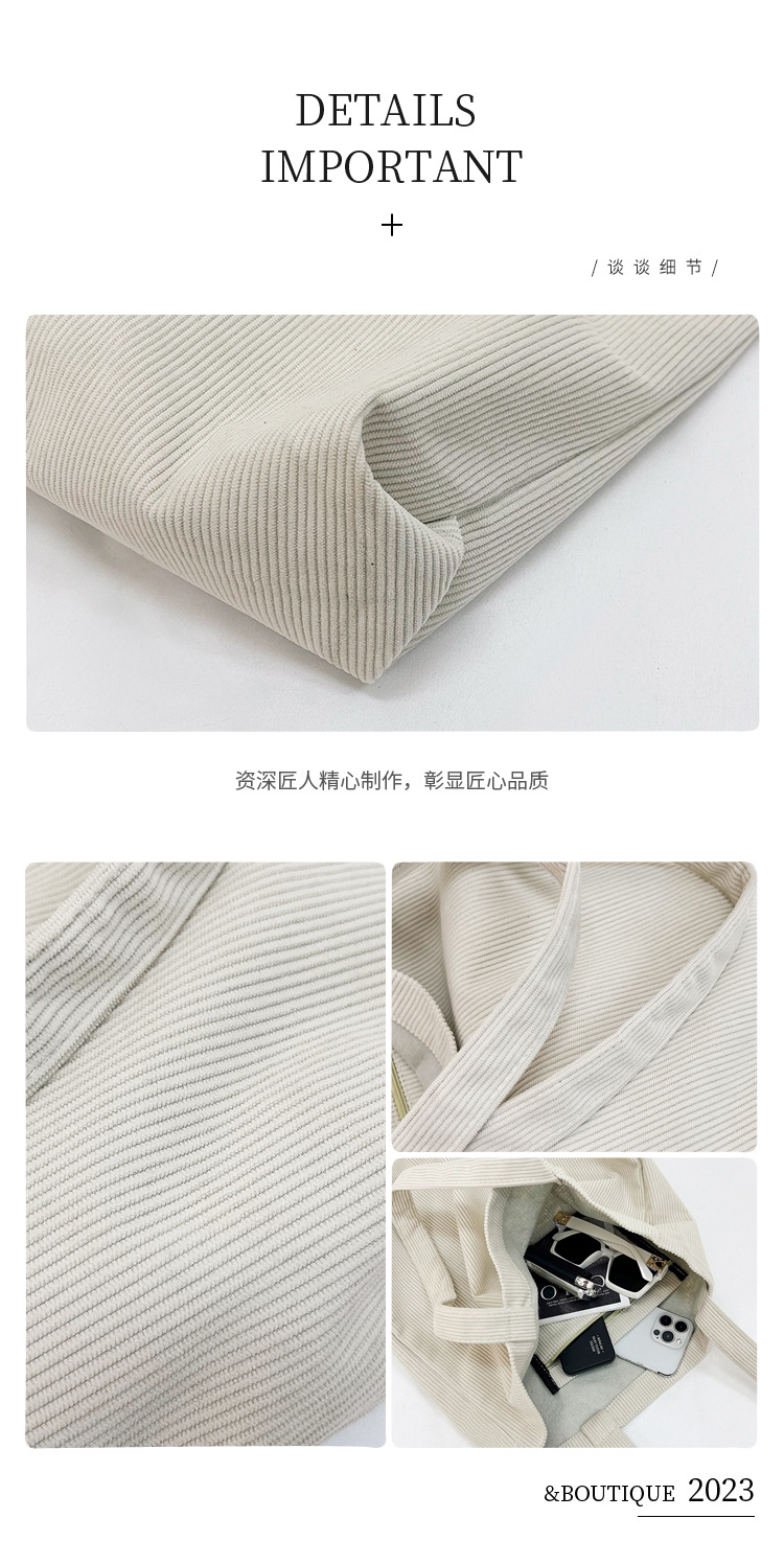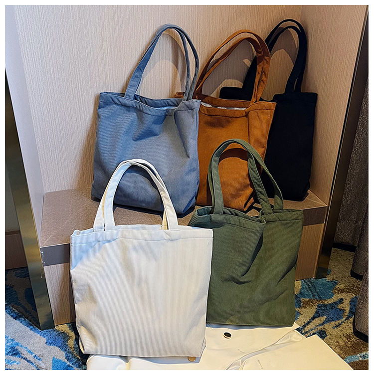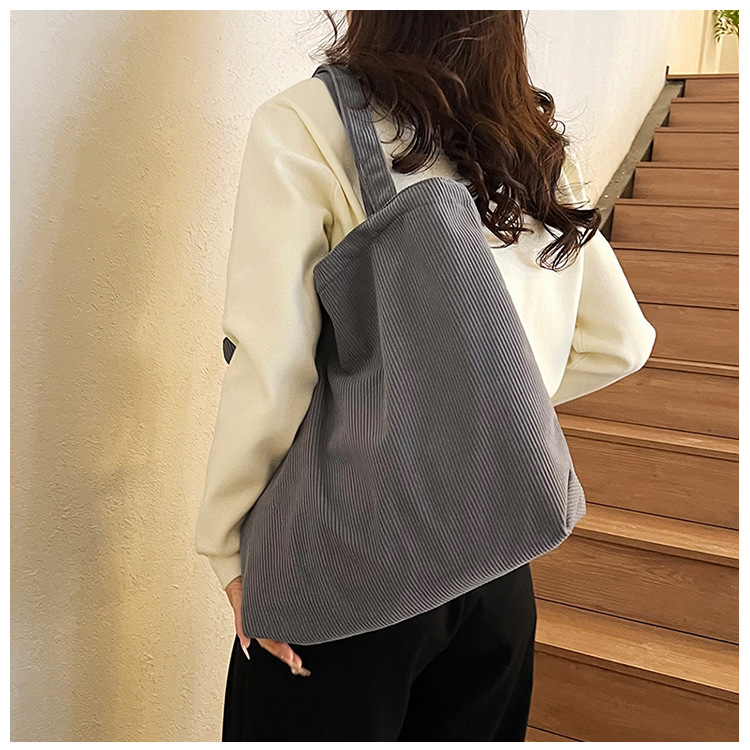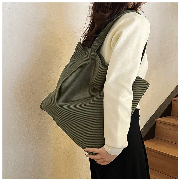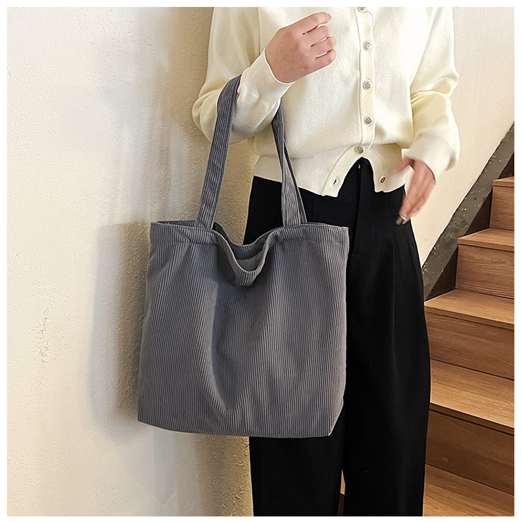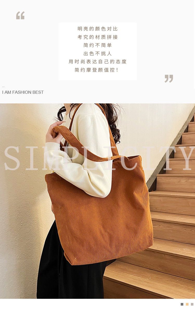 가을 겨울 대용량 코듀로이 토트백 심플하고 세련된 숄더백 단색 핸드백 직장 통근 여성용 가방스토어 가기