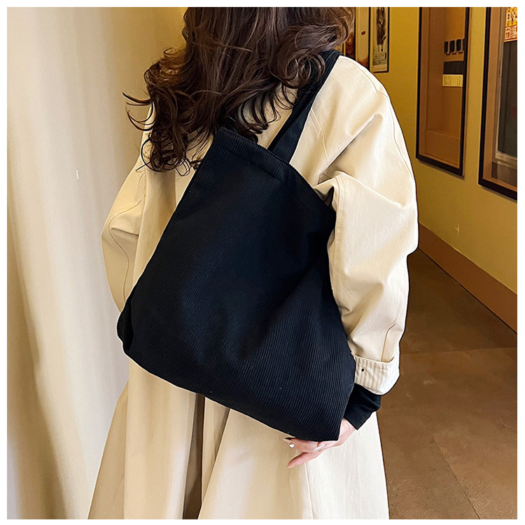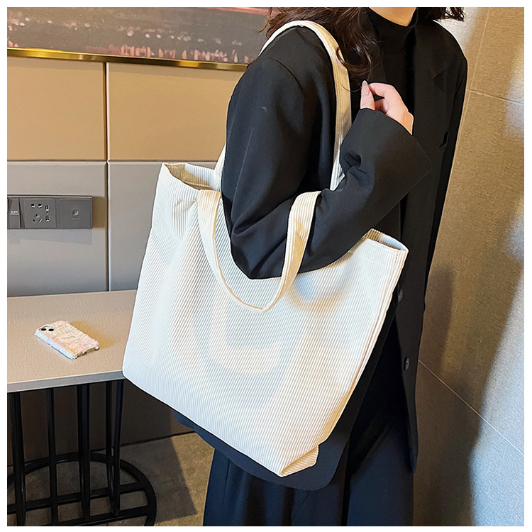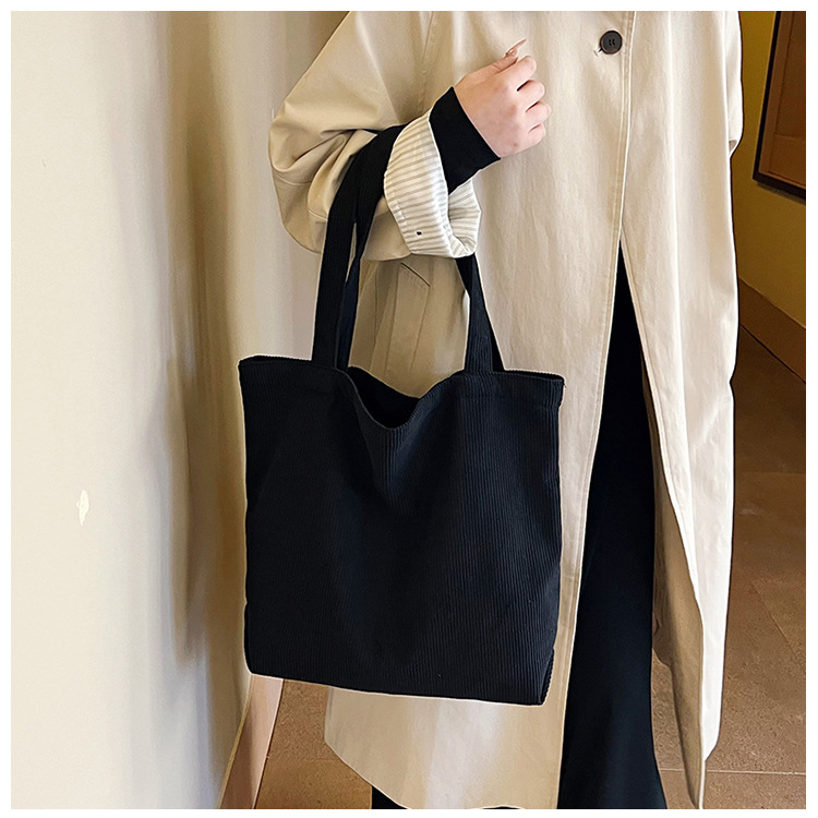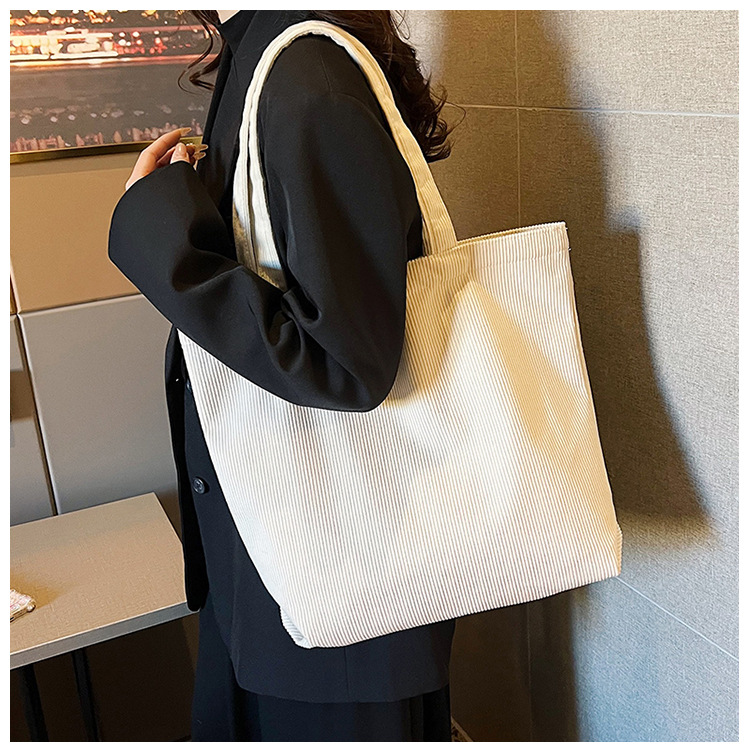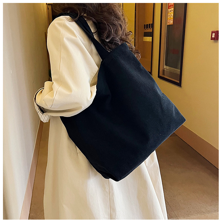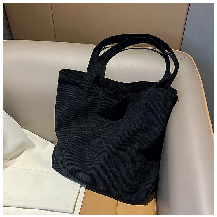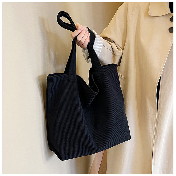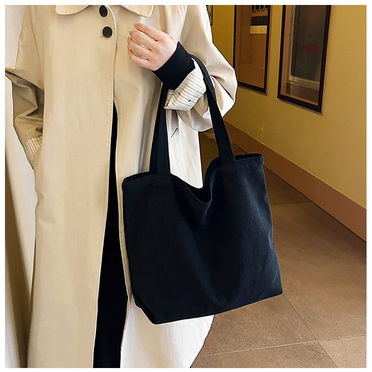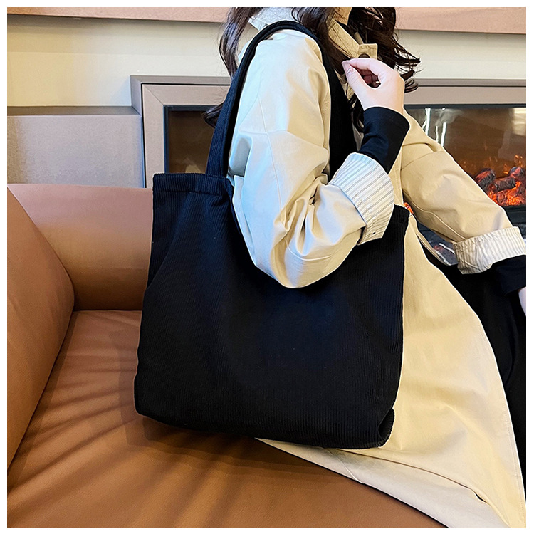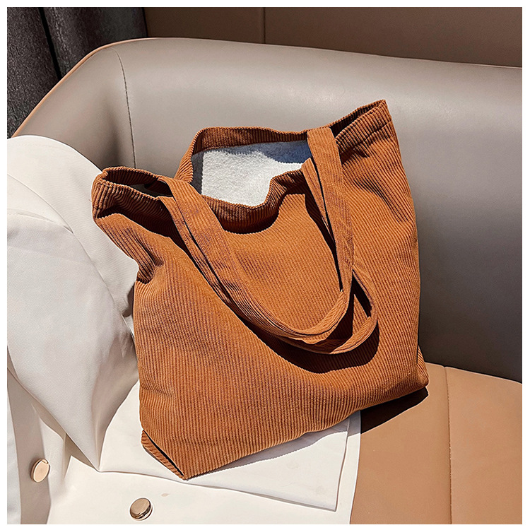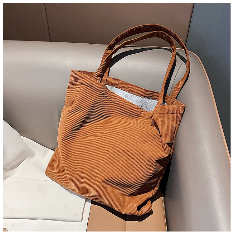 가을 겨울 대용량 코듀로이 토트백 심플하고 세련된 숄더백 단색 핸드백 직장 통근 여성용 가방