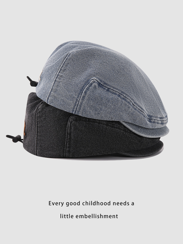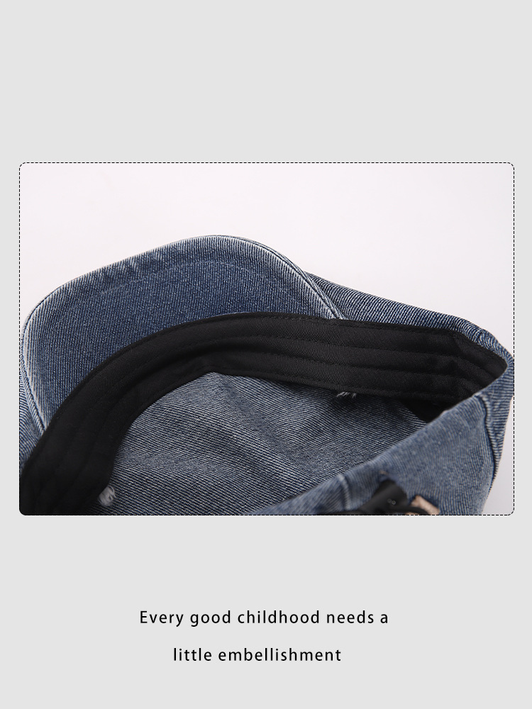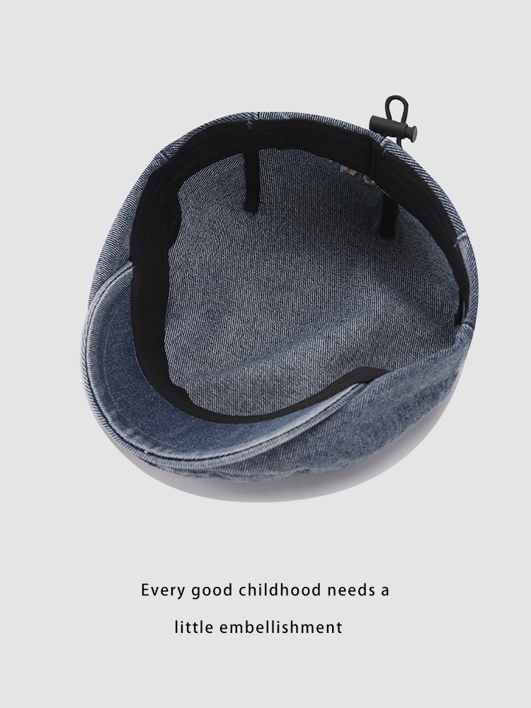 한국판 BOSTON 편지 자수 어린이 앞으로 모자 새 봄과 여름 세탁 데님 아기 베레모 조수